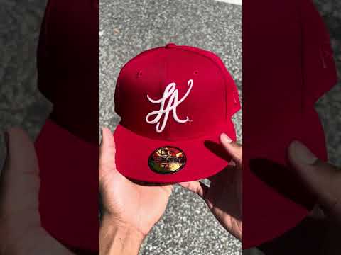 LA Script New Era 59Fifty Hat (Scarlet Red GRAY UNDER BRIM)