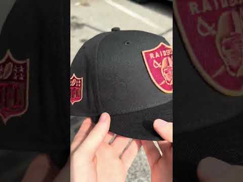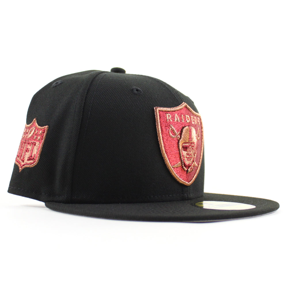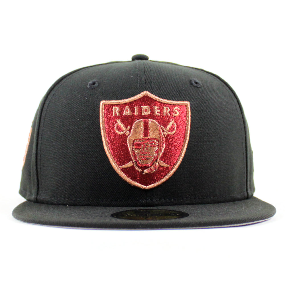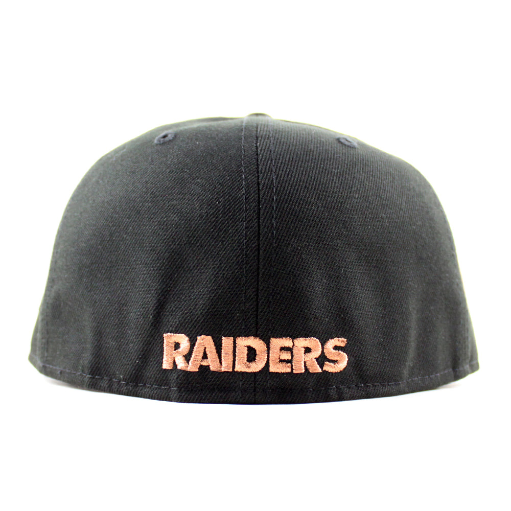 Las Vegas Raiders NFL Patch New Era 59Fifty Fitted Hat in Black with Gray Under Brim.