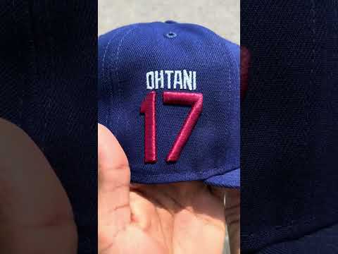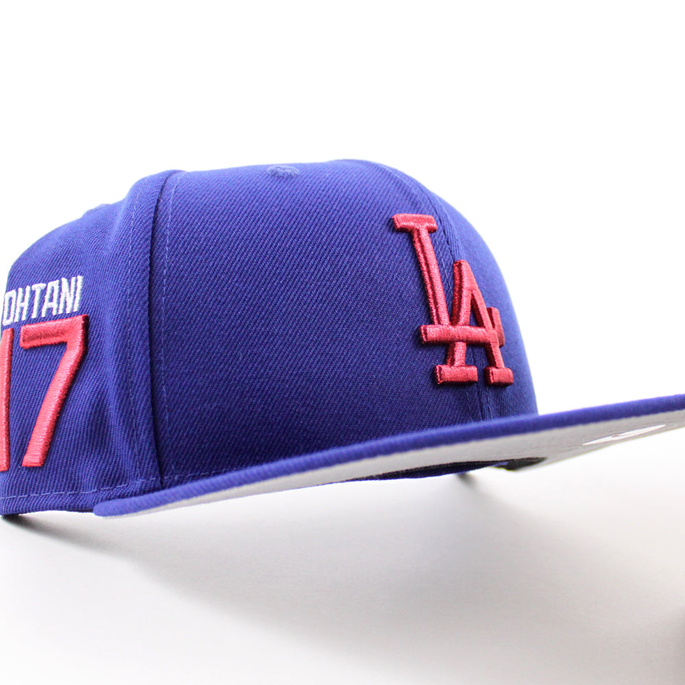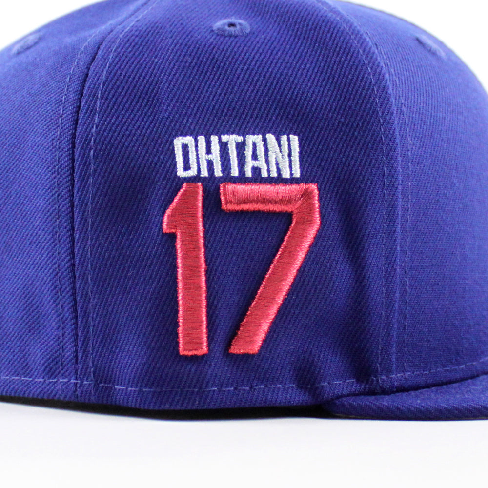Los Angeles 17 Ohtani Patch New Era 59Fifty Fitted Hat in Dark Royal Blue and Gray Under Brim.
