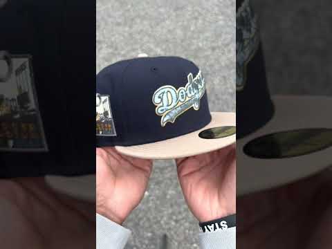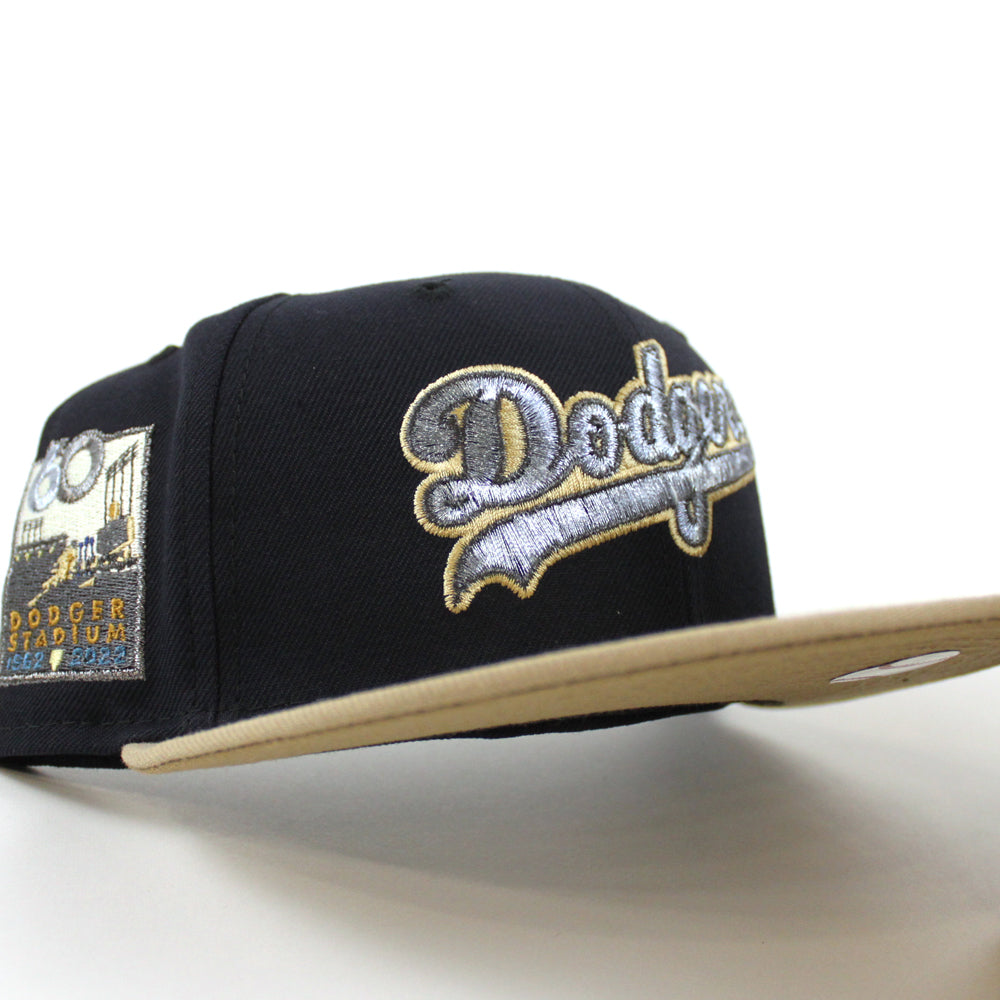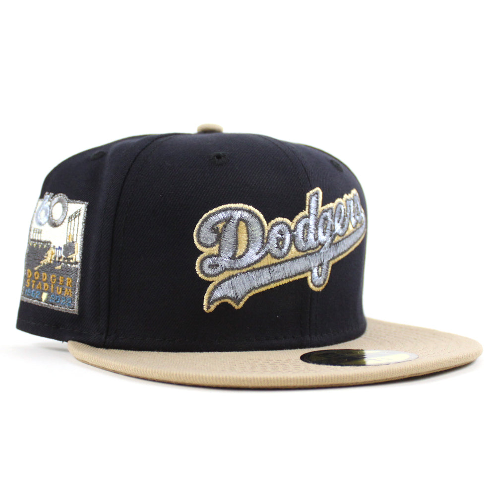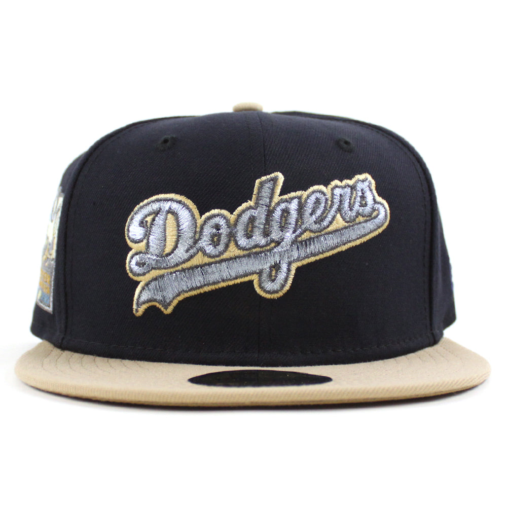 Los Angeles Dodgers 50th Anniversary New Era 59Fifty Fitted Hat in Navy, Camel and Khaki Under Brim.