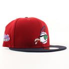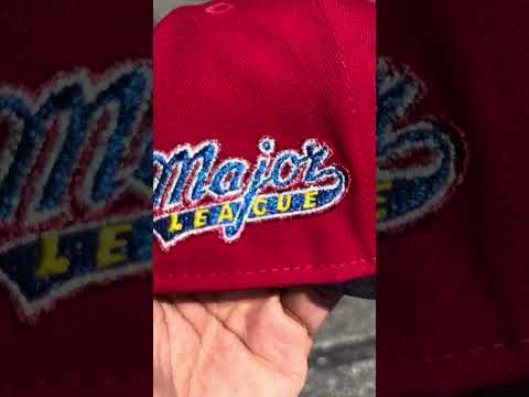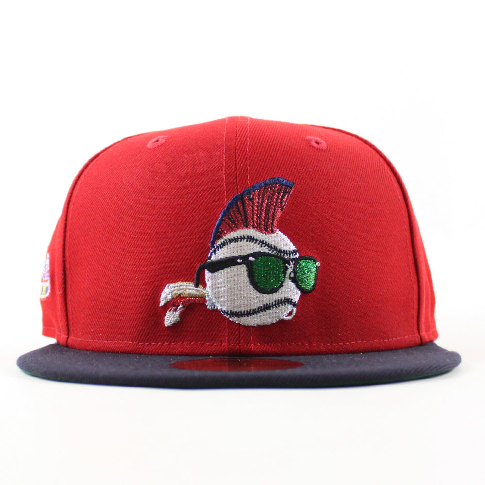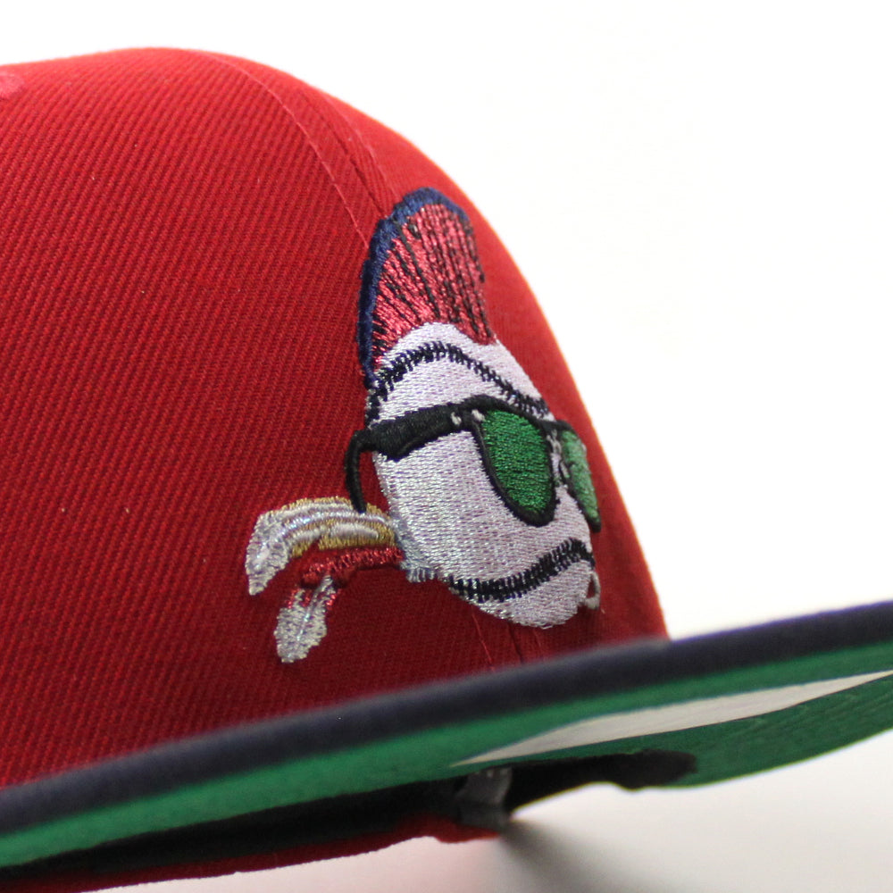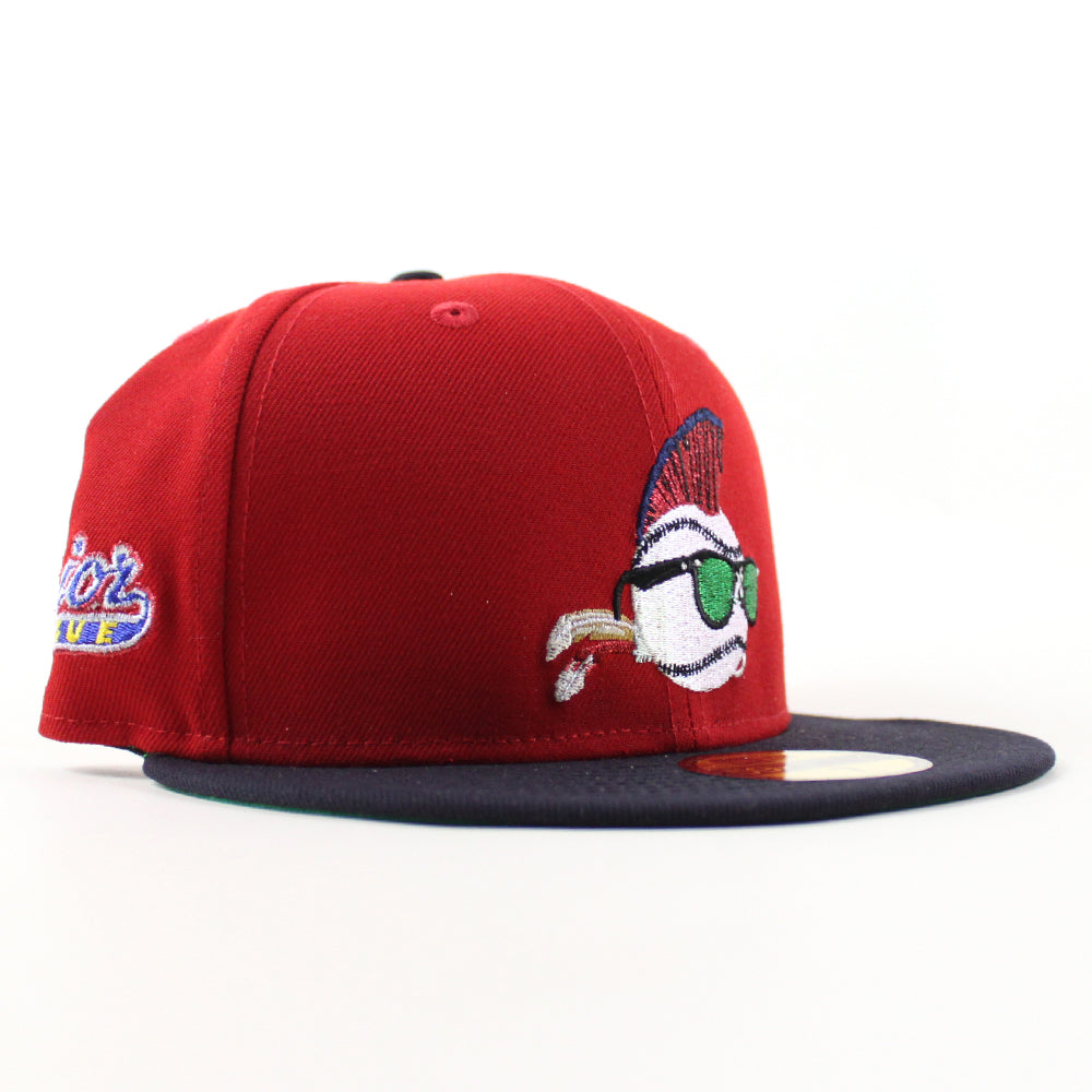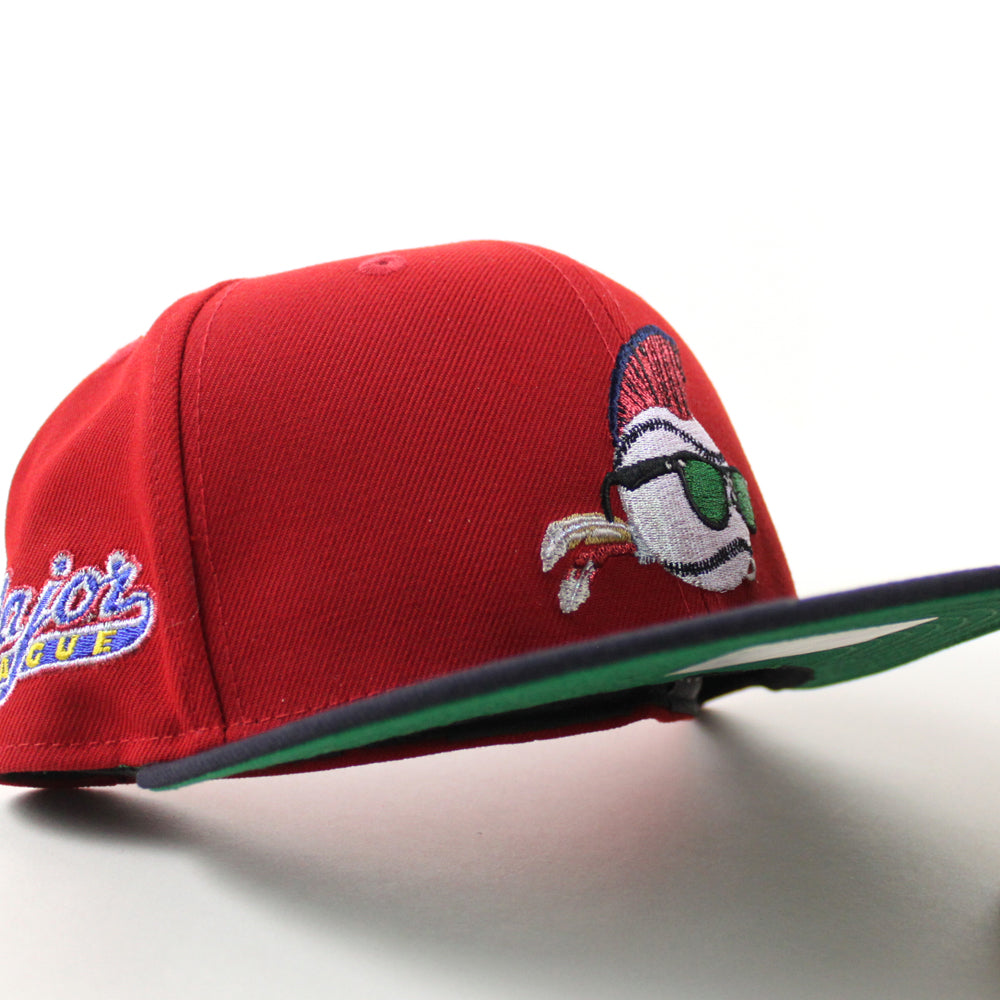 MAJOR LEAGUE Wild Thing New Era 59Fifty Fitted Hat in Scarlet Red, Navy with Green Under Brim.
