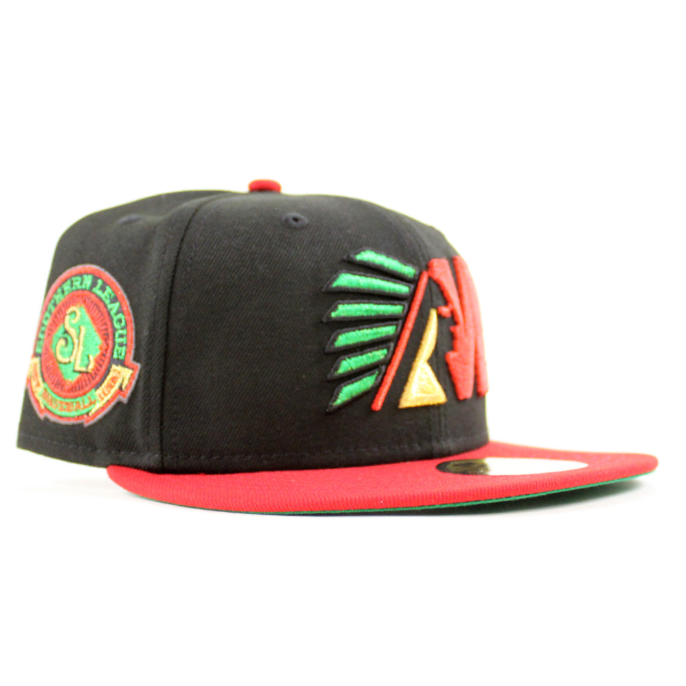 MEMPHIS CHICKS SOUTHERN LEAGUE New Era 59Fifty Fitted Hat (Black Scarlet Red Green Under Brim)