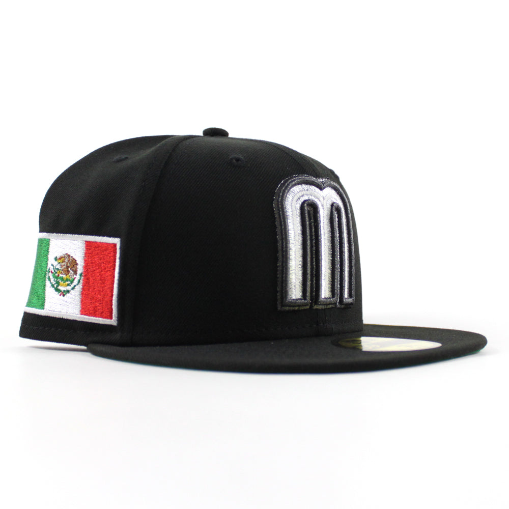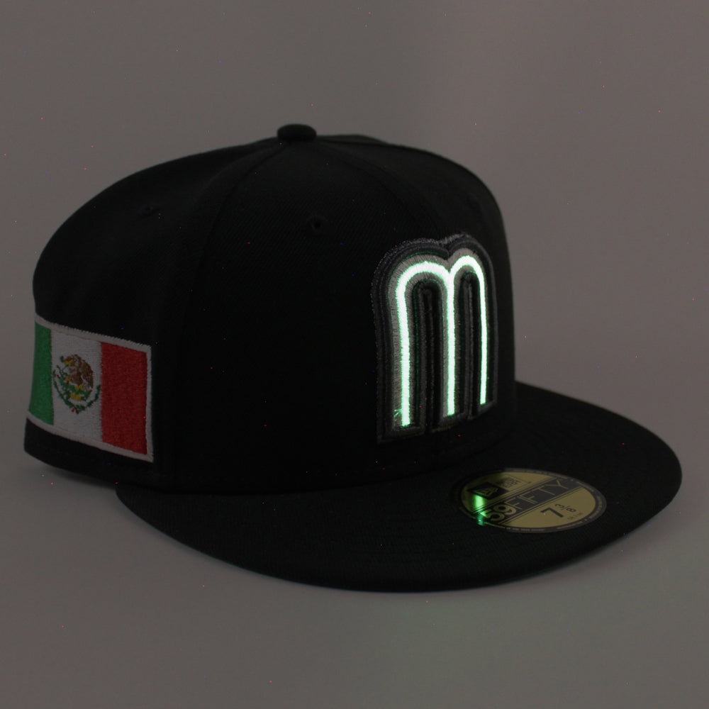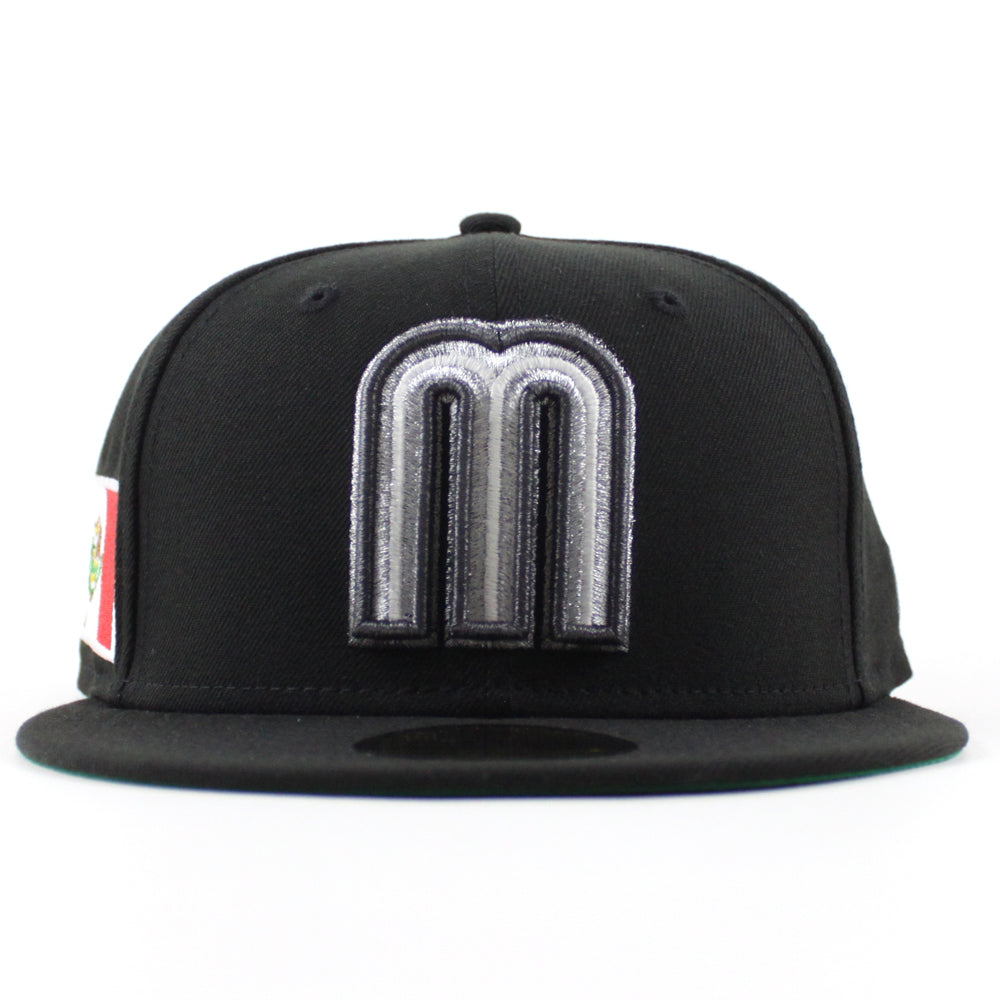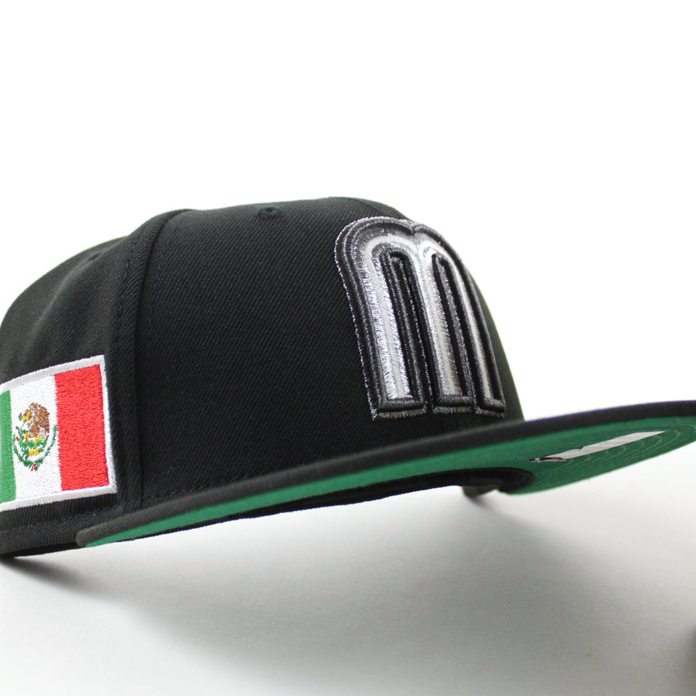 Mexico 2023 World Baseball Classic (WBC) Mexican Flag New Era 59Fifty Fitted Hat in Black and Green Under Brim.