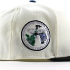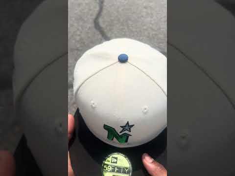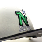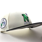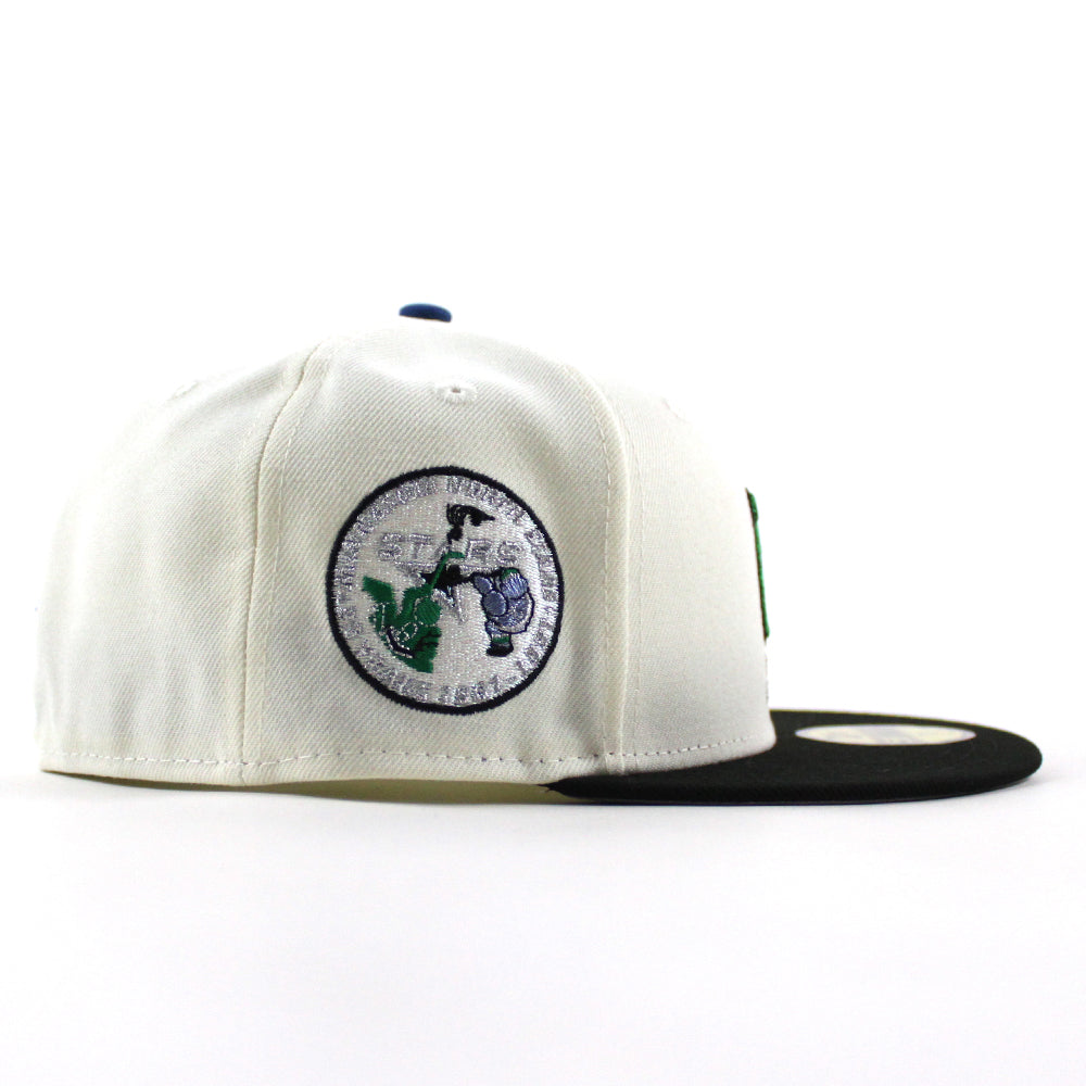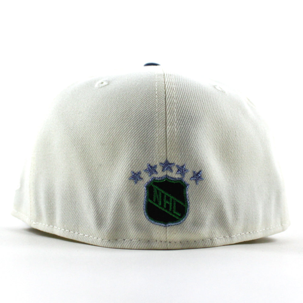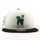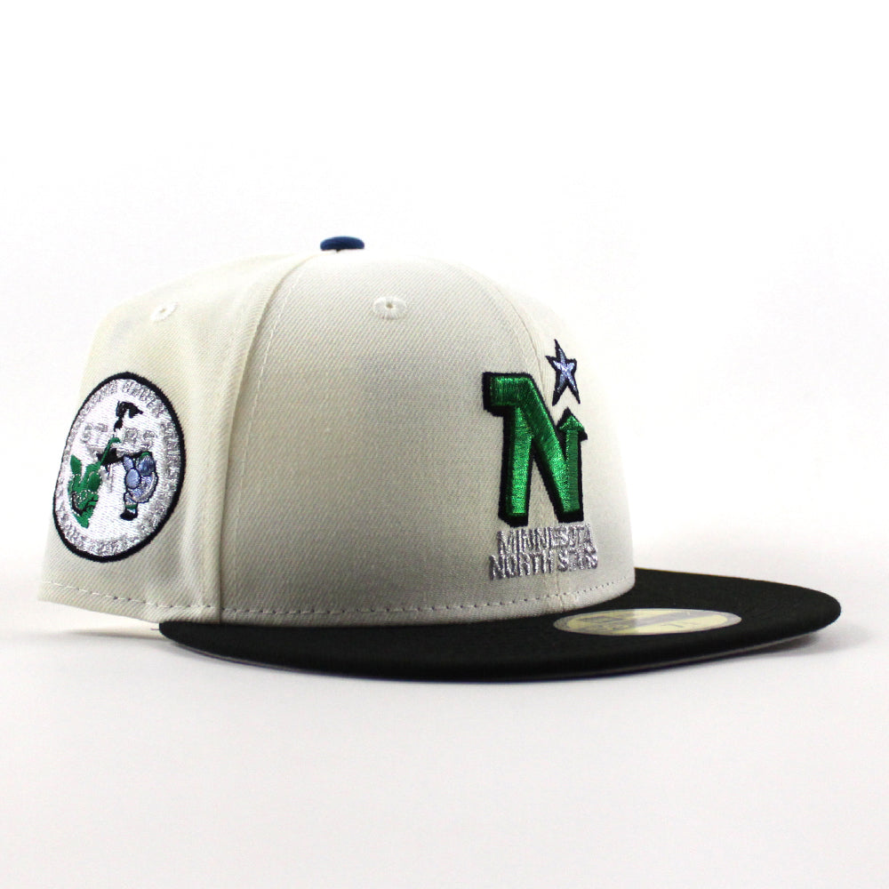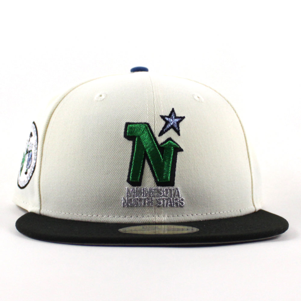 Retro Minnesota North Stars 25 Years New Era 59Fifty Fitted Hat in Chrome White, Black and Gray Under brim.