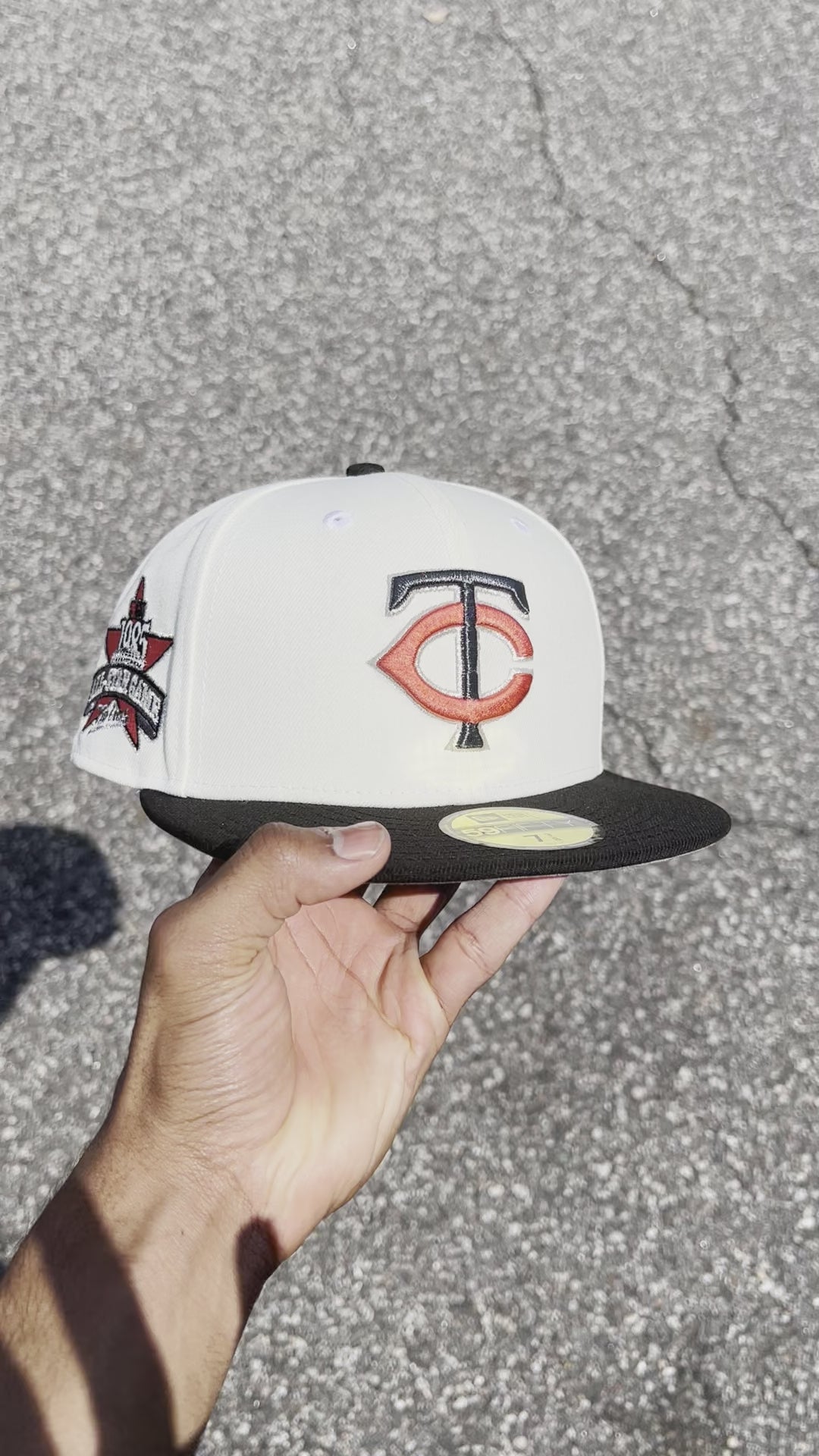 Minnesota Twins 1985 All Star Game New Era 59Fifty Fitted Hat in Chrome White, Black and Gray Under Brim. Contributed by cut_your_cable201