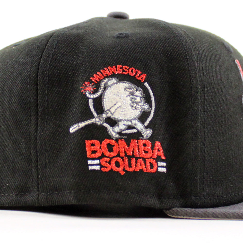 Minnesota Twins Bombs Squad New Era Fitted Hat in Black Dark Gray and Gray Under Brim.