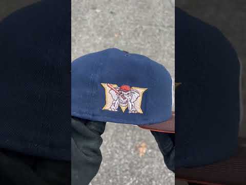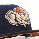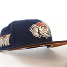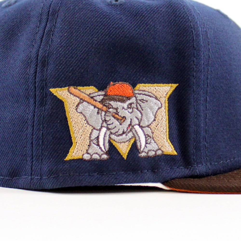 MODESTO AS M ELEPHANT HOMETOWN COLLECTION New Era 59Fifty Fitted Hat in Oceanside Blue, Burnt Wood, and Rust Orange Under Brim.