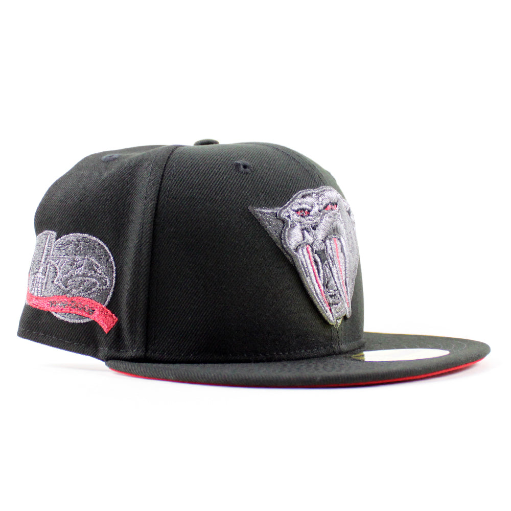 Nashville Predators 10 Years New Era 59Fifty Fitted Hat in Black and Red Under brim.