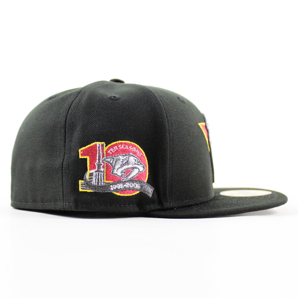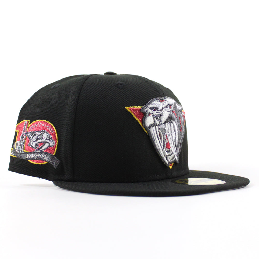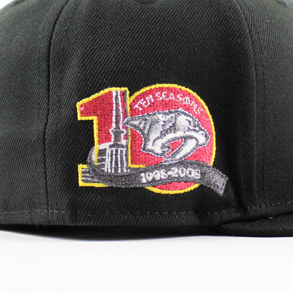 Nashville Predators 10 Years New Era 59Fifty Fitted Hat in Black and Gray Under brim.