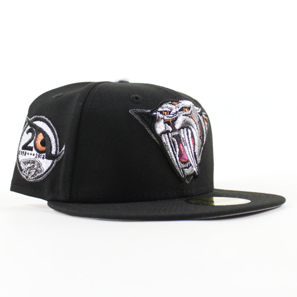 Nashville Predators 10 Years New Era 59Fifty Fitted Hat in Black and Gray Under brim.