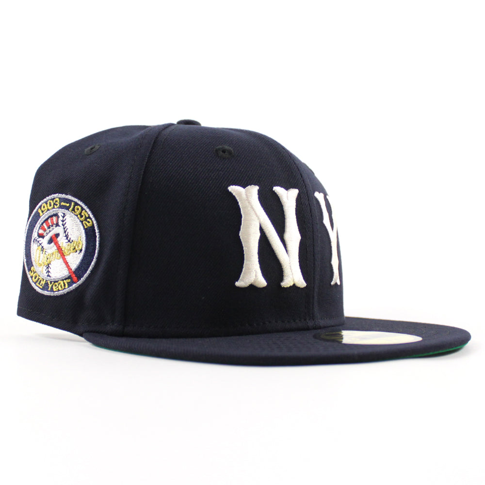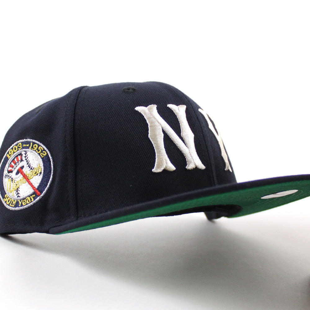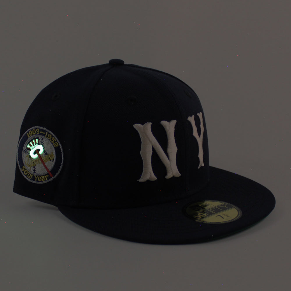 New York Highlanders 50th Year Patch New Era 59Fifty Fitted Hat in Navy and Green Under Brim.