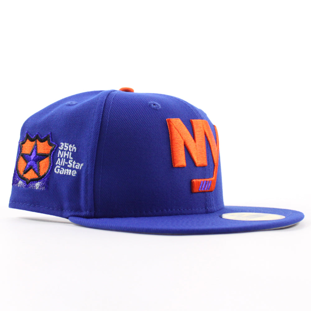 New York Islanders 35th All Star Game Patch New Era 59Fifty Fitted Hat in Majestic Blue with a Gray Under Brim.