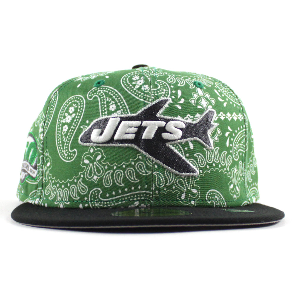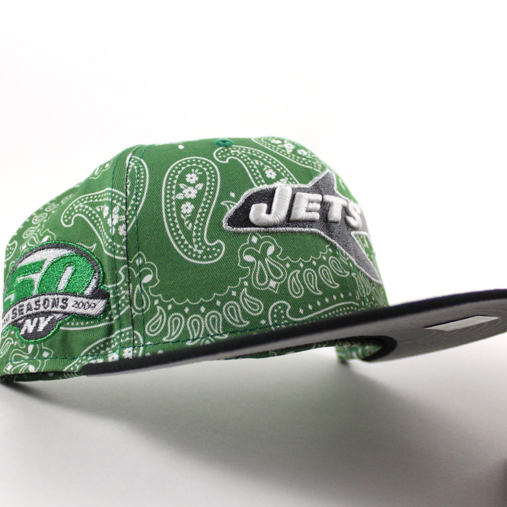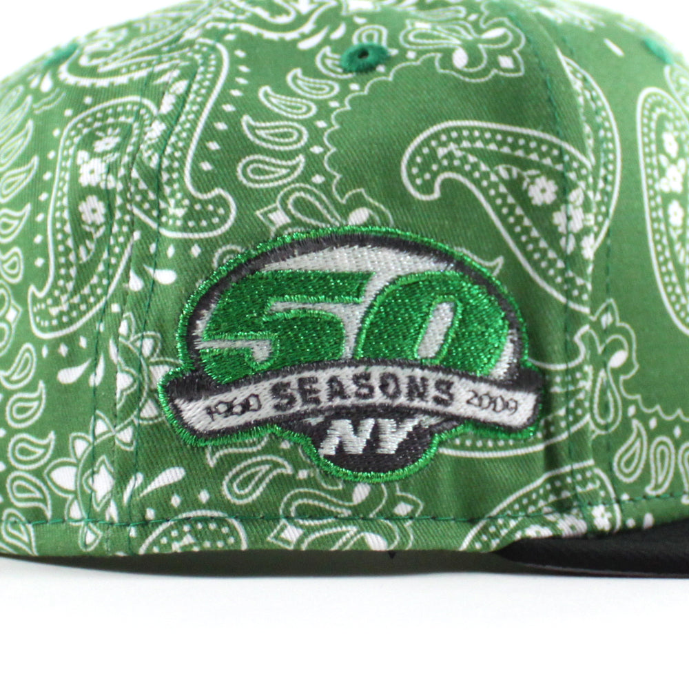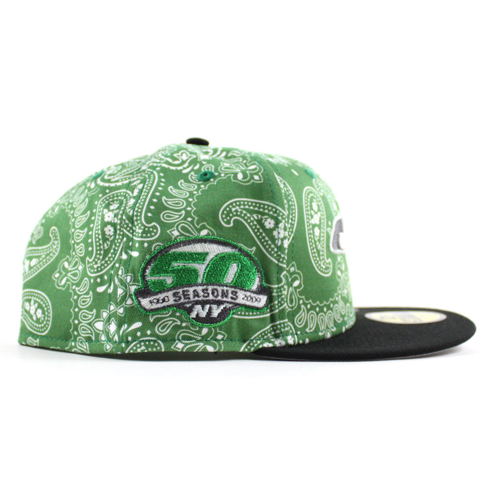 New York Jets 50 Seasons New Era 59Fifty Fitted Hat (Green Paisely Black Gray Under Brim)