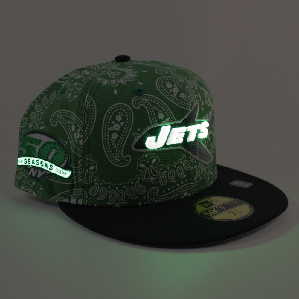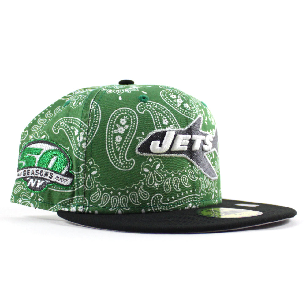 New York Jets 50 Seasons New Era 59Fifty Fitted Hat in Green Paisely, Black and Gray Under Brim. Get your order in before their all gone!