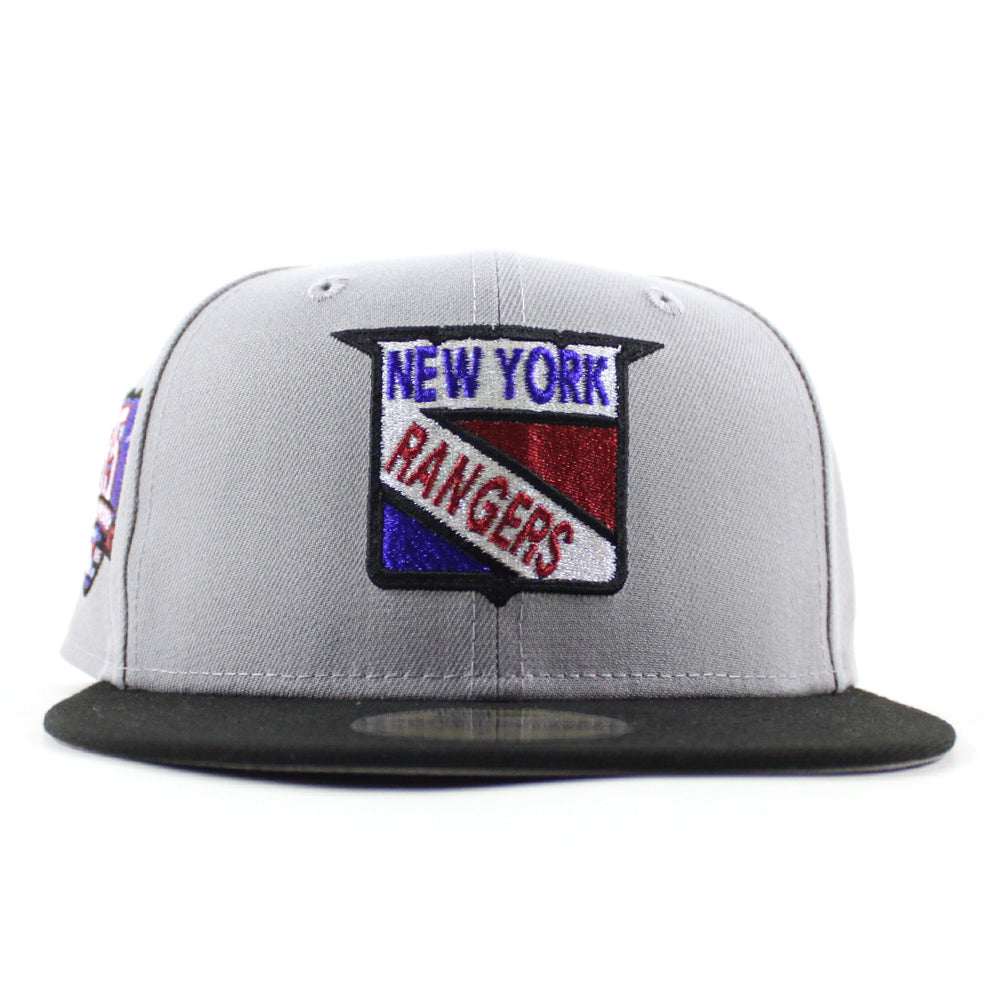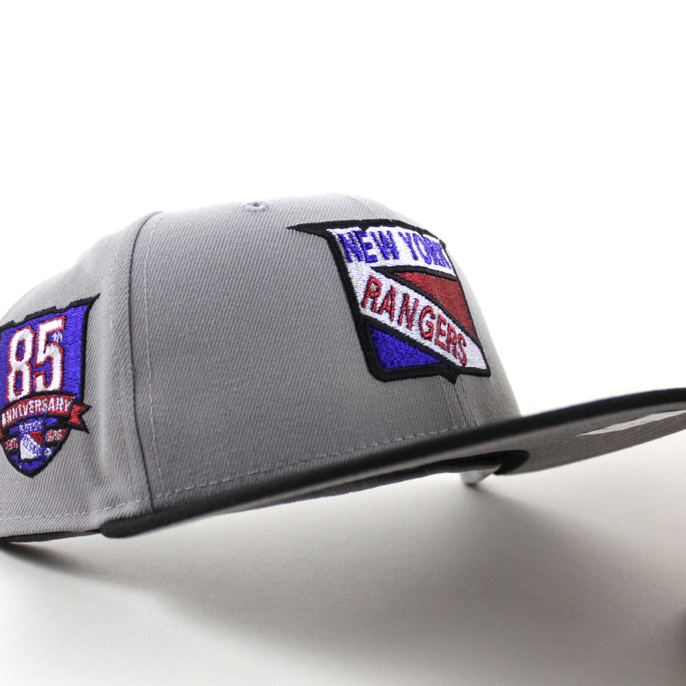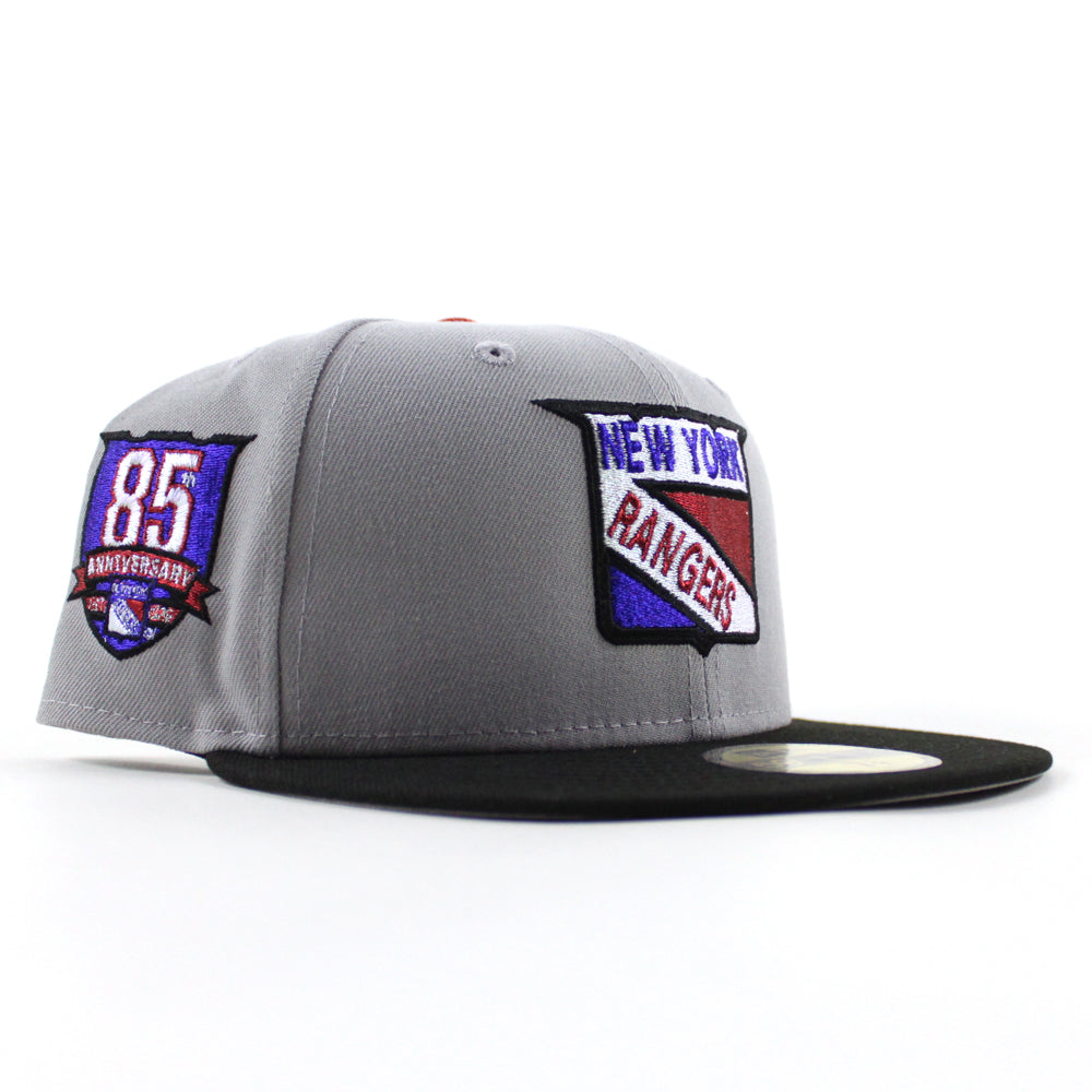 New York Rangers SHIELD 1965-1966 85th Anniversary New Era 59Fifty Fitted Hat (Gray Black Gray Under brim)