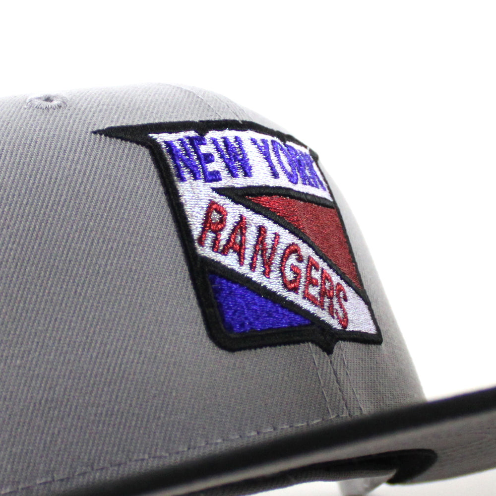Retro New York Rangers SHIELD 1965-1966 85th Anniversary New Era 59Fifty Fitted Hat in Gray, Black and Gray Under brim.