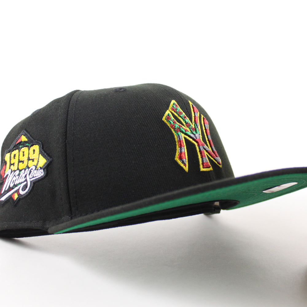 New York Yankees 1999 World Series New Era 59Fifty Fitted Hat in Black with a Green Under Brim.