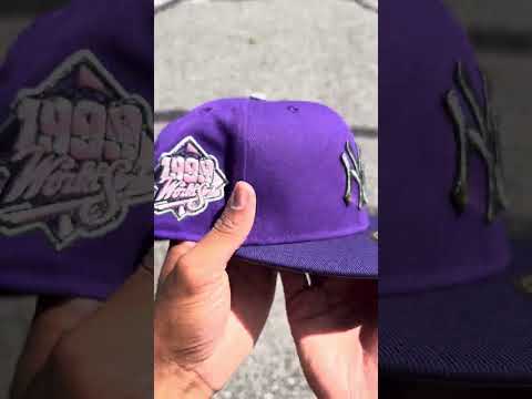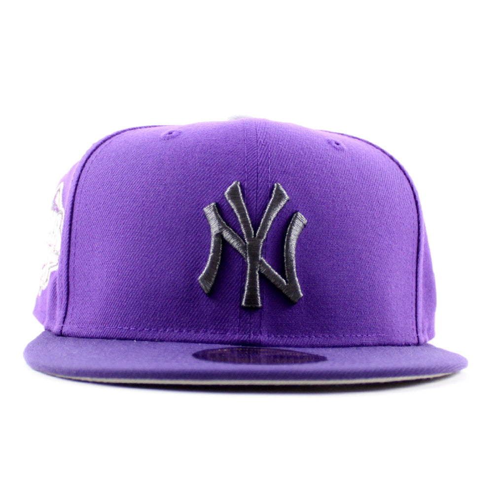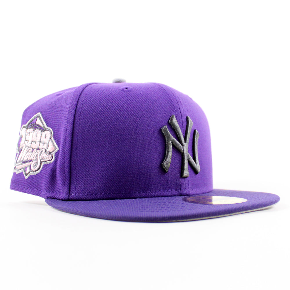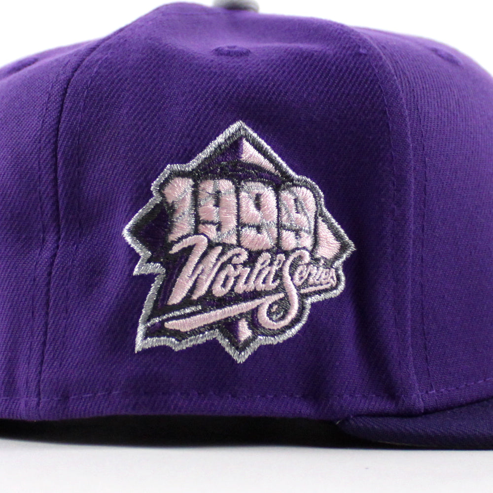 New York Yankees 1999 World Series New Era 59Fifty Fitted Hat in Deep Purple and Gray Under Brim.