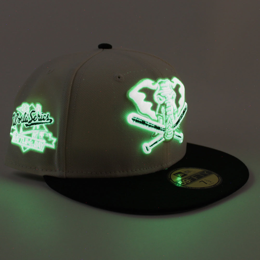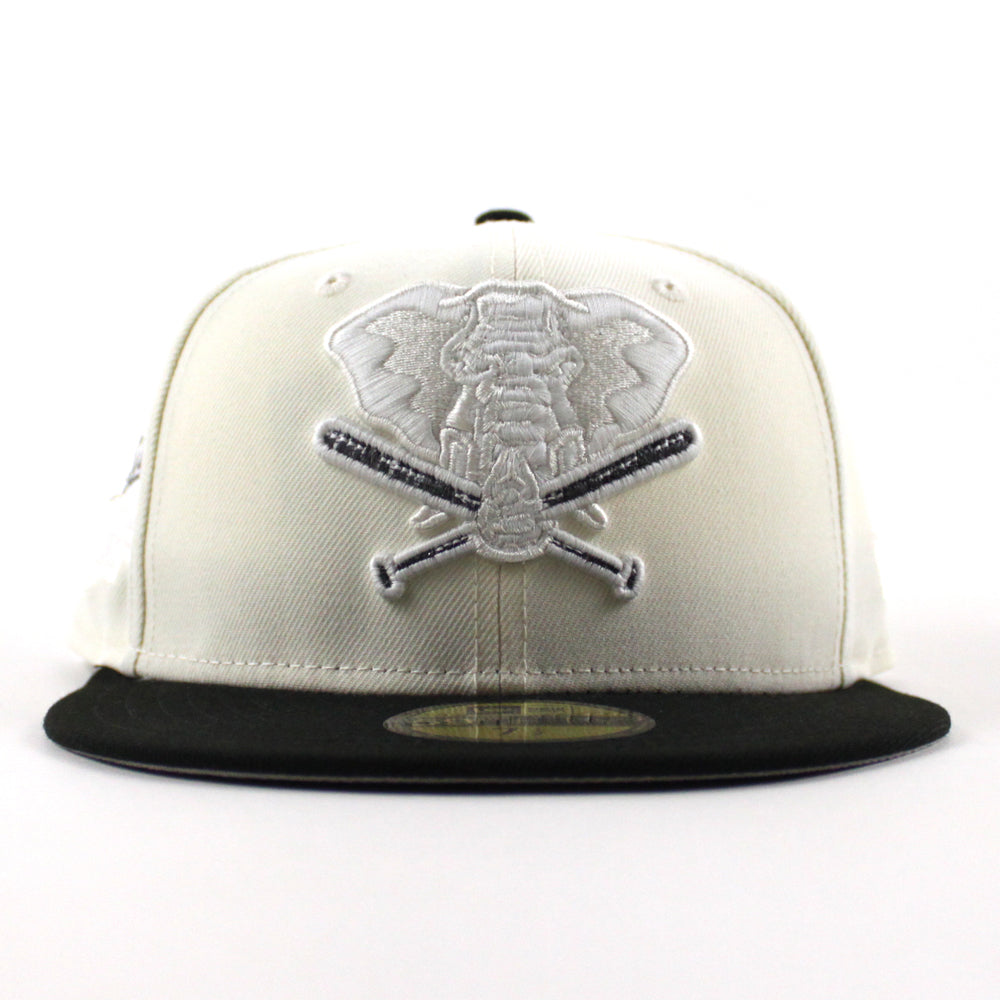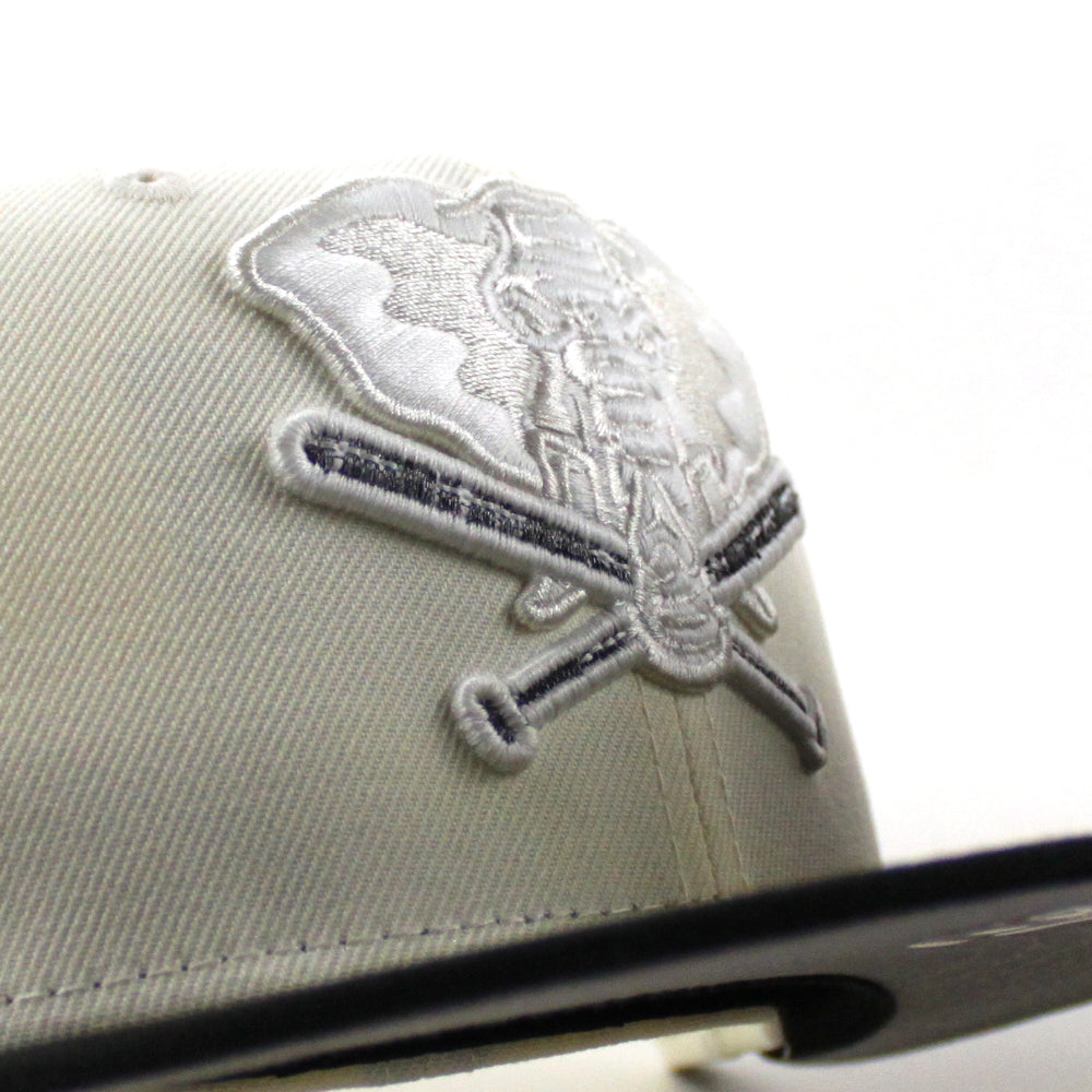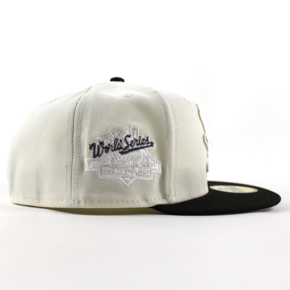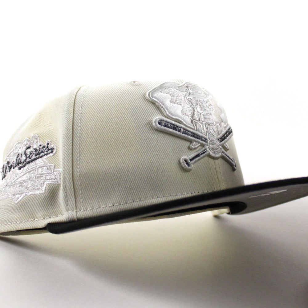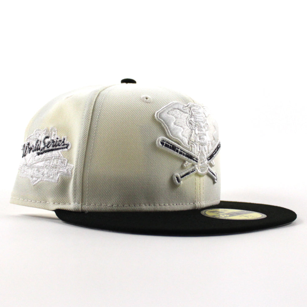Oakland Athletics 1989 World Series New Era 59Fifty Fitted Hat in Chrome White, Black and Gray Under Brim.