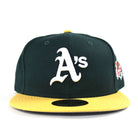 Iconic Oakland Athletics New Era fitted hat done up in Green and Yellow with a Kelly Green under Brim.