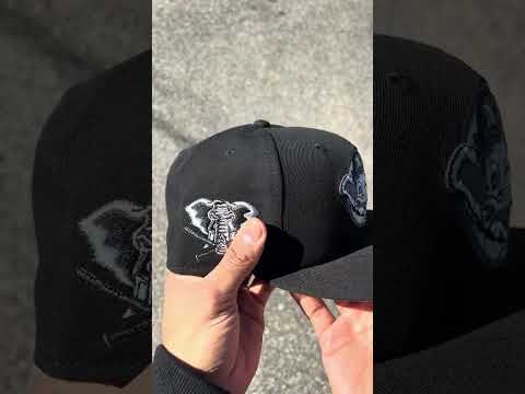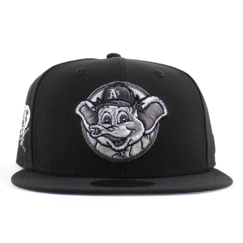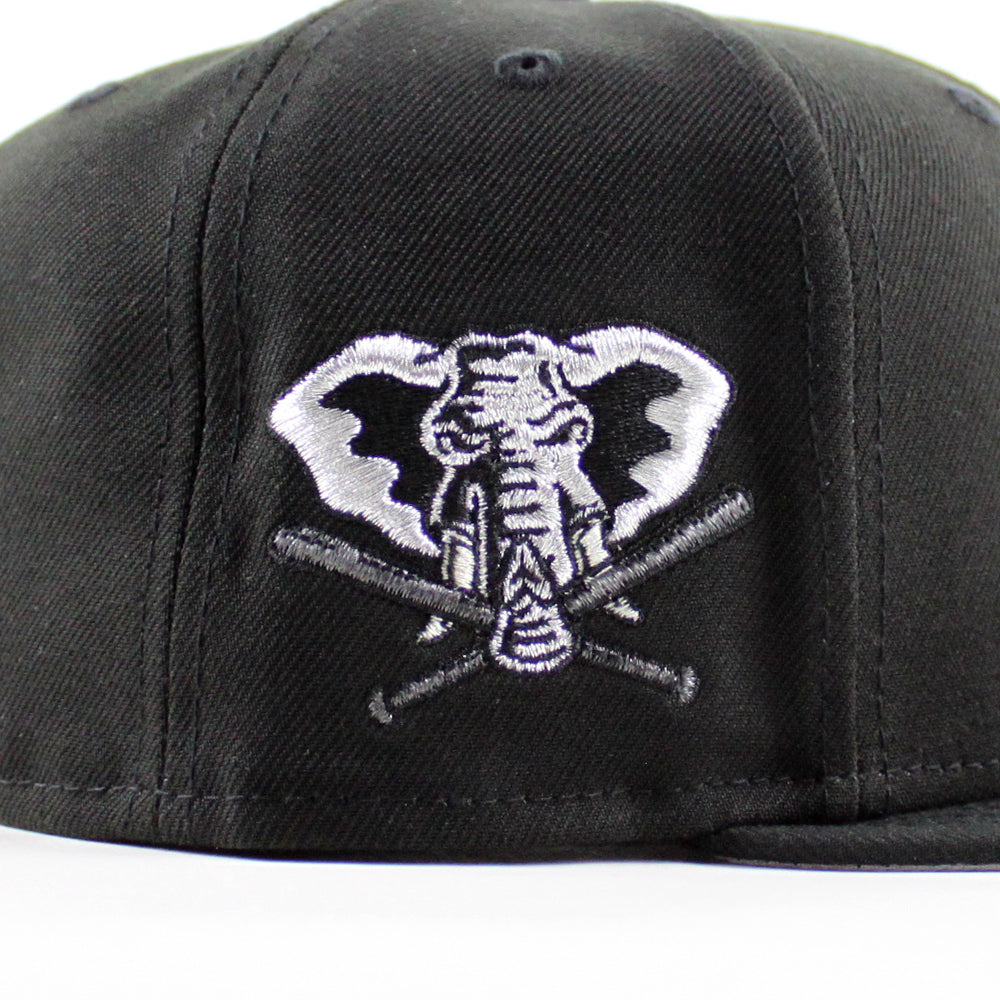 Oakland Athletics Elephant Patch New Era 59Fifty Fitted Hat in Black with Gray Under Brim.