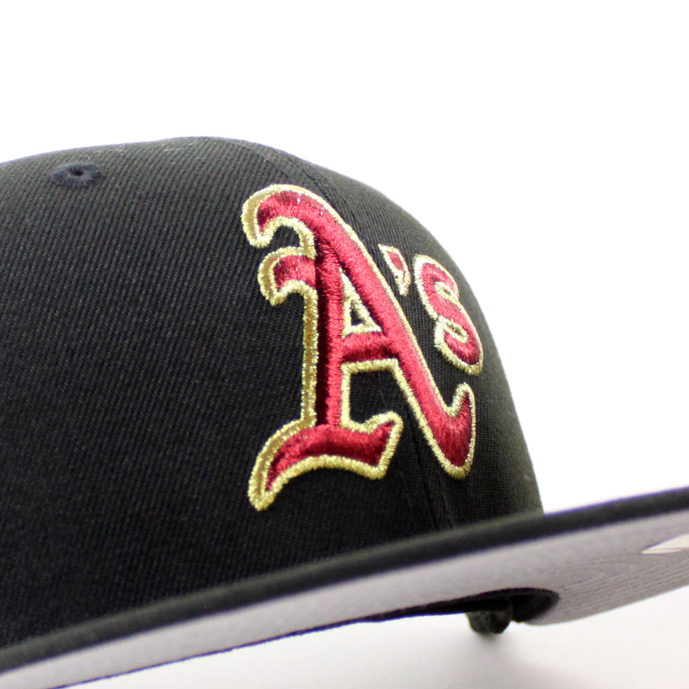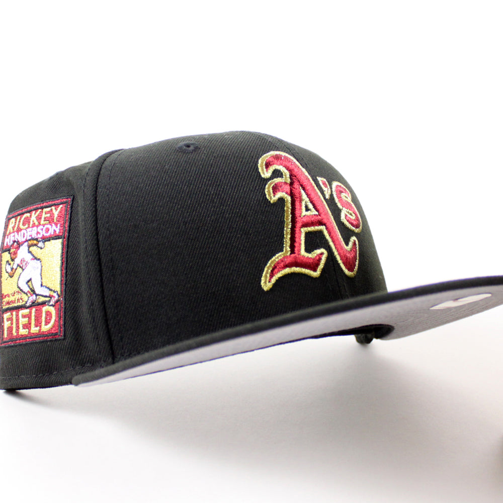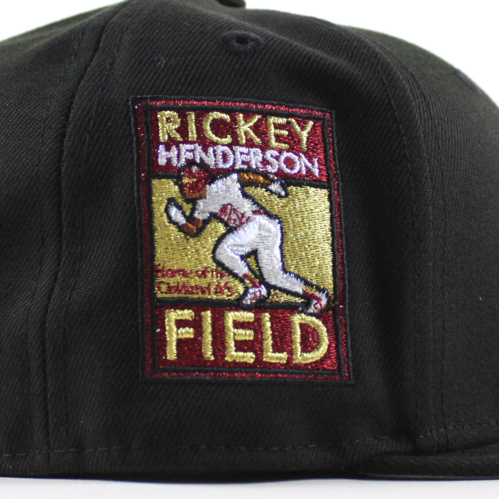 Oakland Athletics Ricky Henderson New Era 59Fifty Fitted Hat in Black With Gray Under Brim.