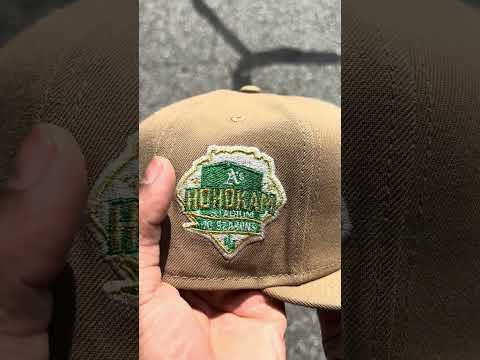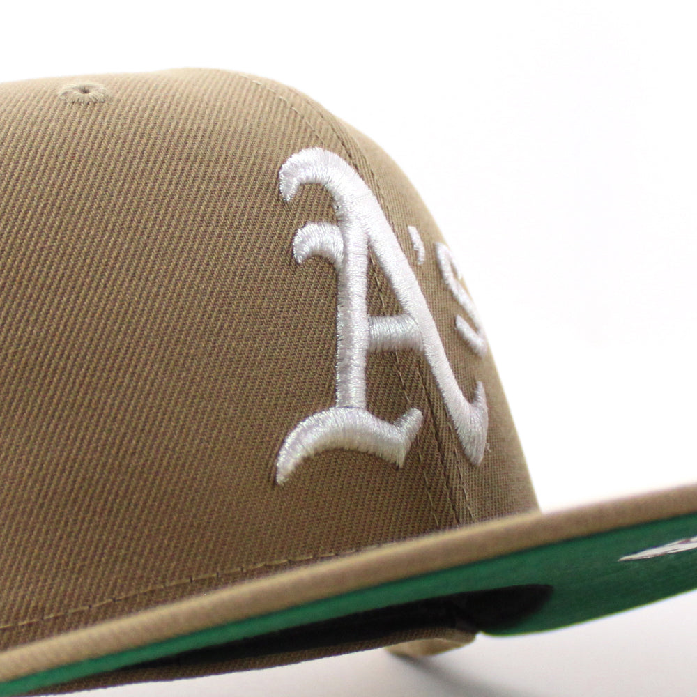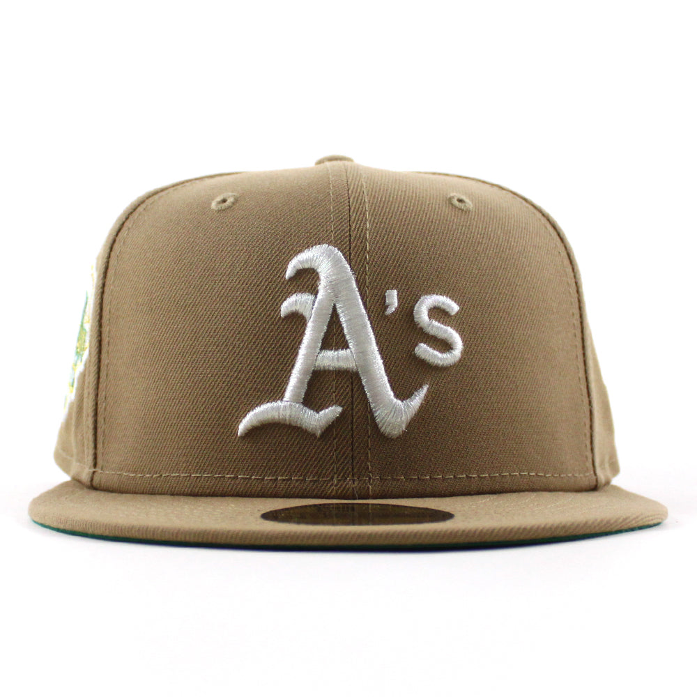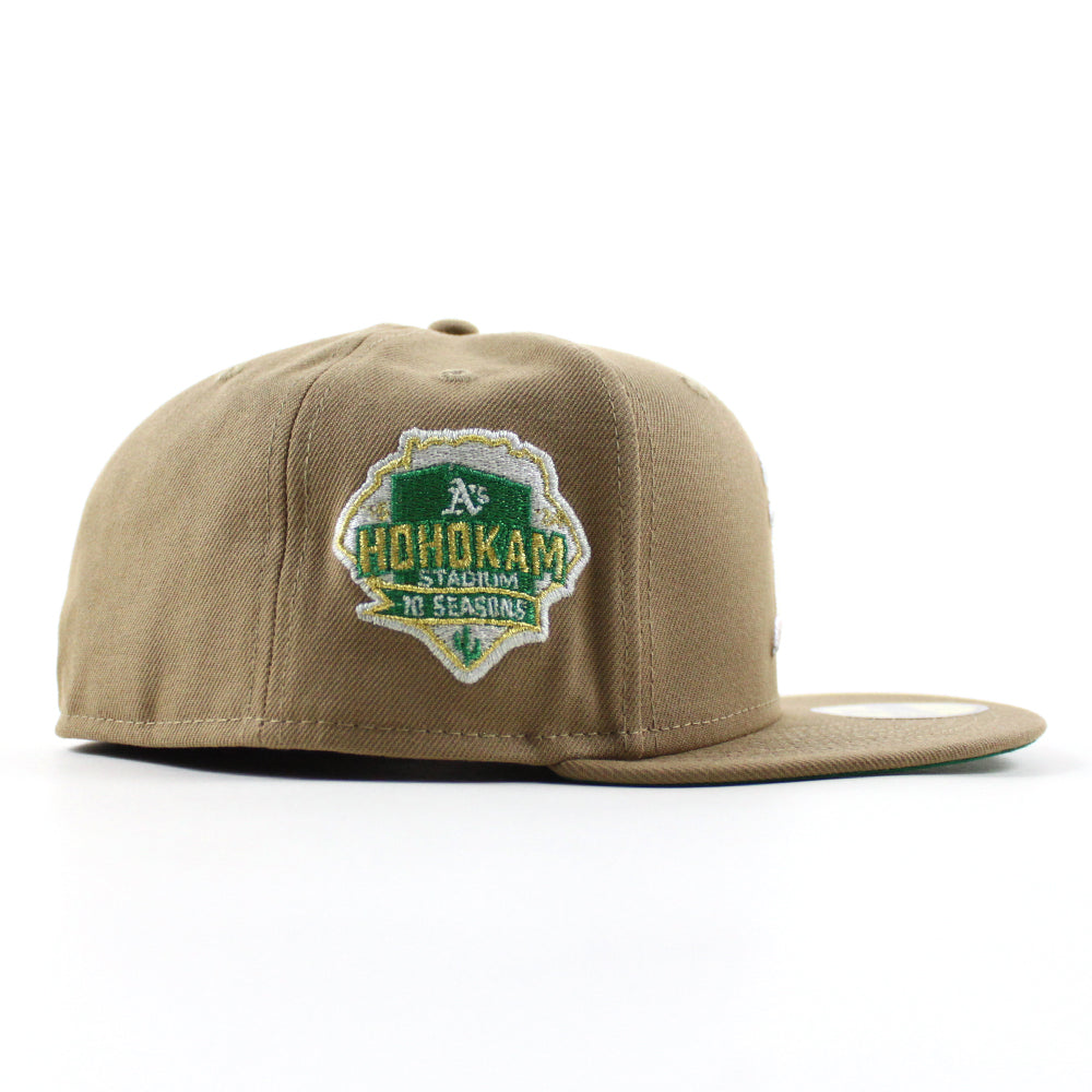 Oakland Athletics Hohokam Stadium 70 Season New Era 59Fifty Fitted Hat in Khaki, Green Under Brim.