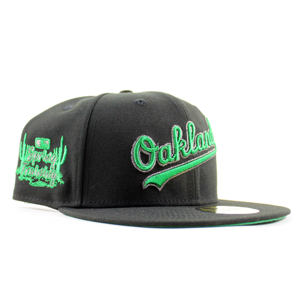 Oakland Athletics Spring Training New Era 59Fifty Fitted Hat in Black, Green Under Brim.
