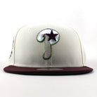 Philadelphia Phillies 1942 All Star Game 59Fifty New Era Fitted Hat in Chrome White, Maroon and Kelly Green Under Brim.