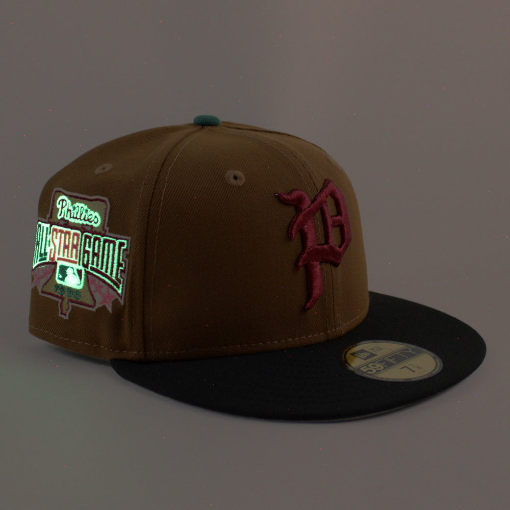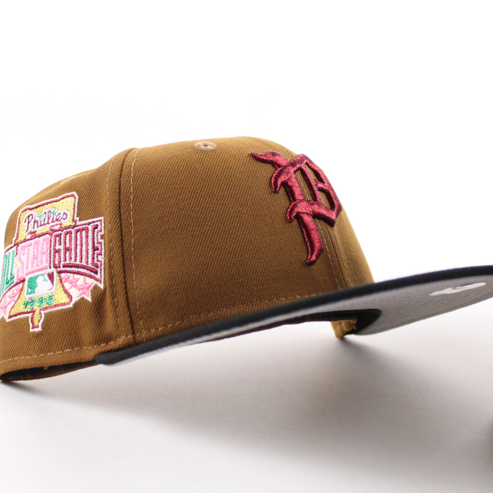 Philadelphia Phillies 1996 All Star Game 59Fifty New Era Fitted Hat in Toasted Peanut and Black With a Gray Under Brim.