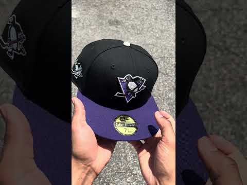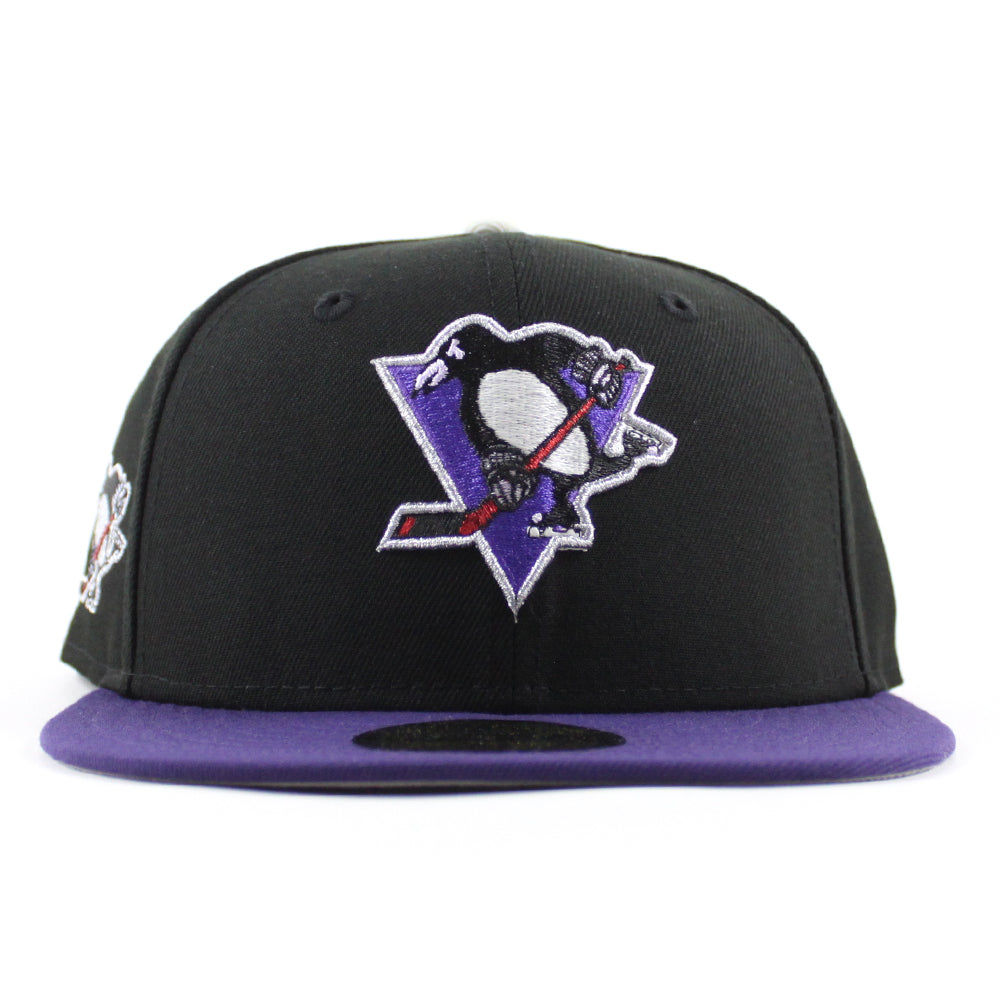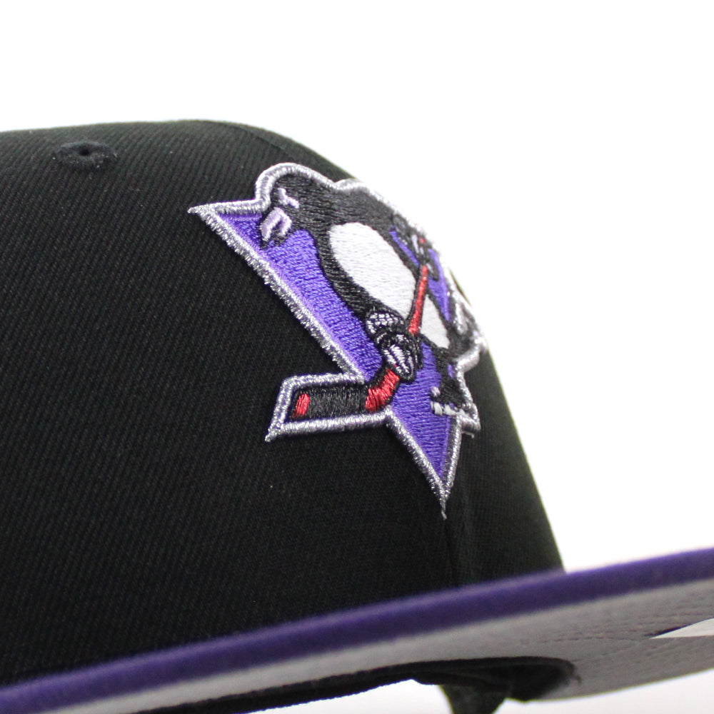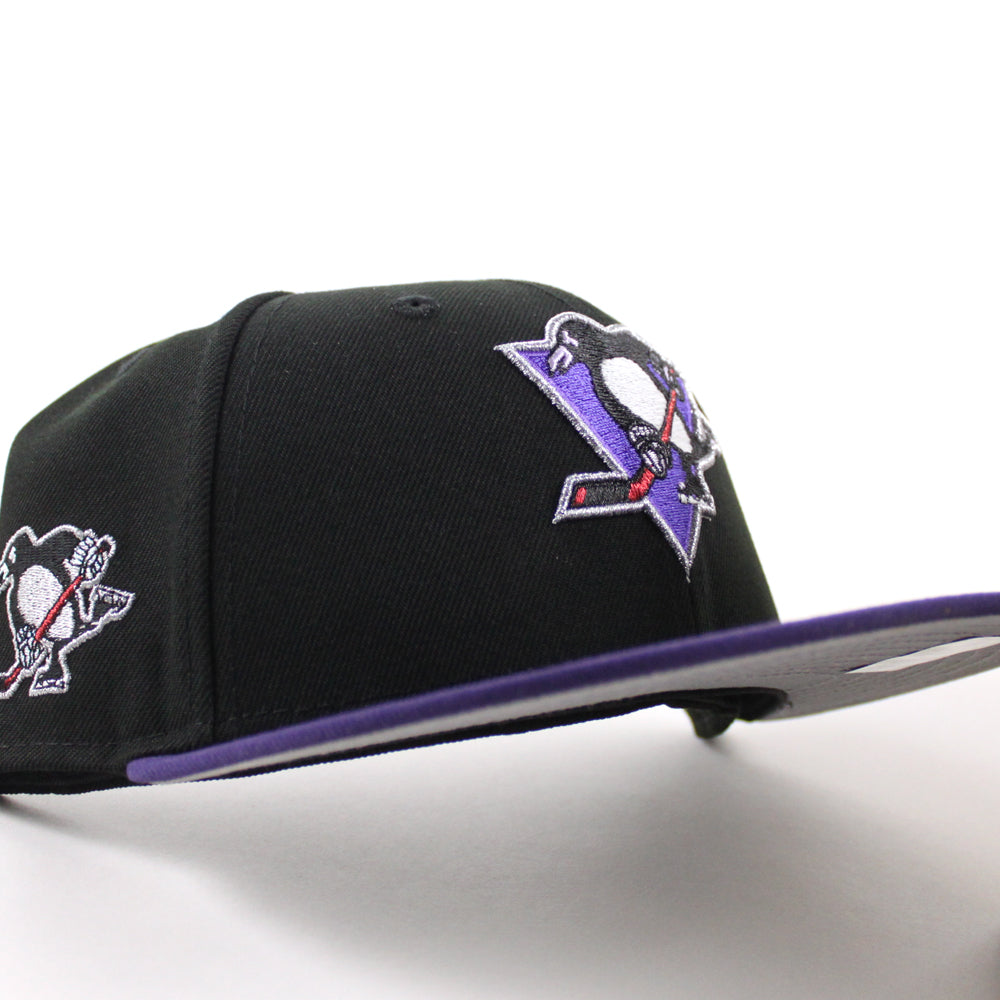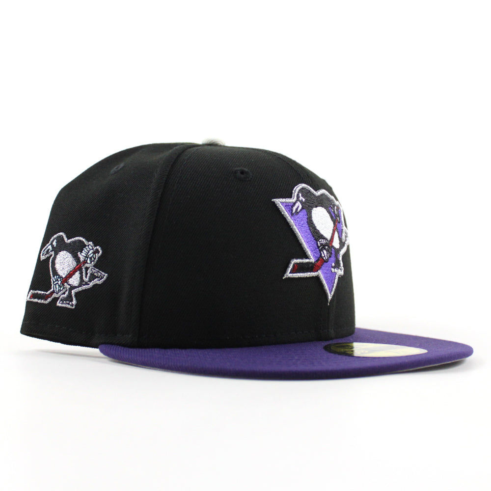 Pittsburgh Penguins Penguin Patch New Era 59Fifty Fitted Hat in Black, Purple and Gray Under brim.