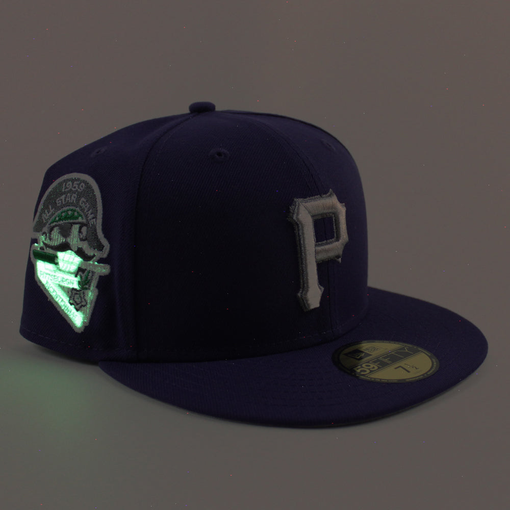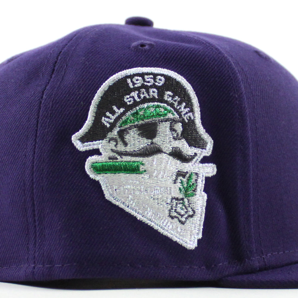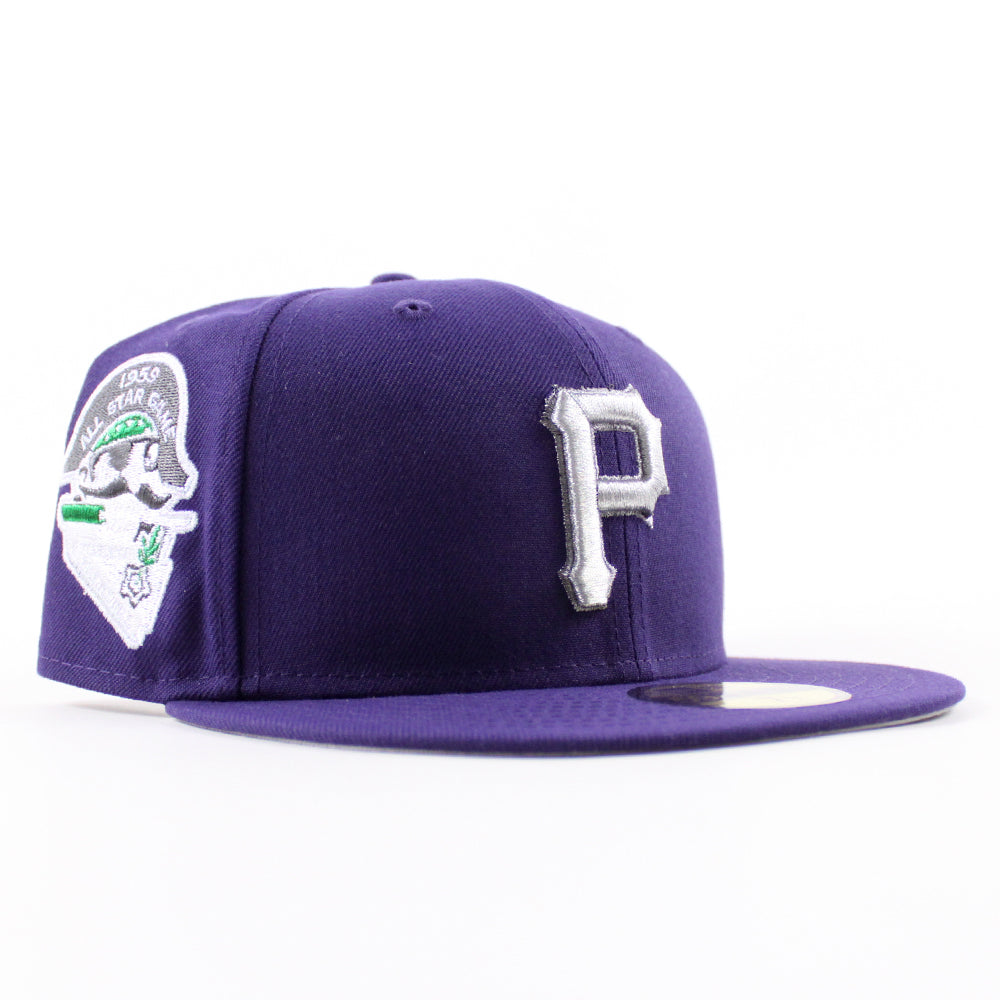 Pittsburgh Pirates 1959 All Star Game 59Fifty New Era Fitted Hats in Purple and Gray Under Brim.