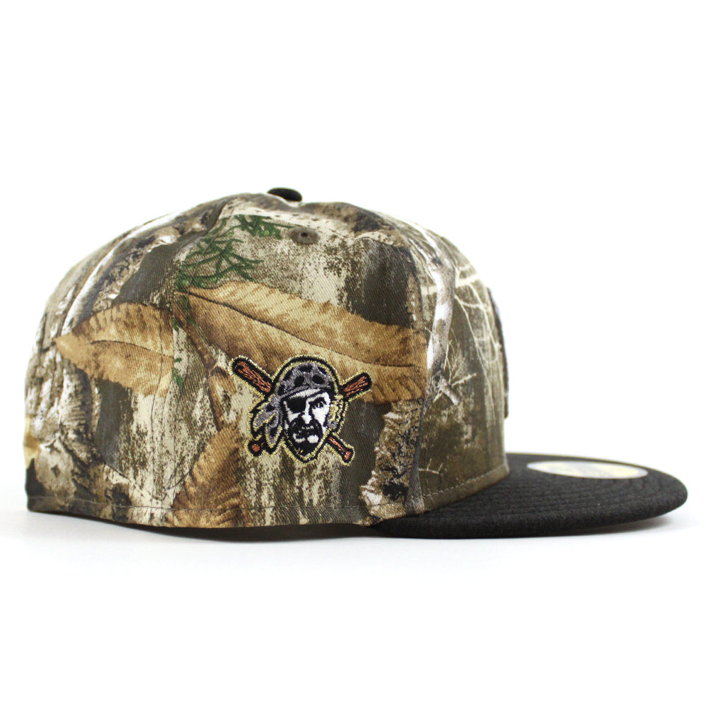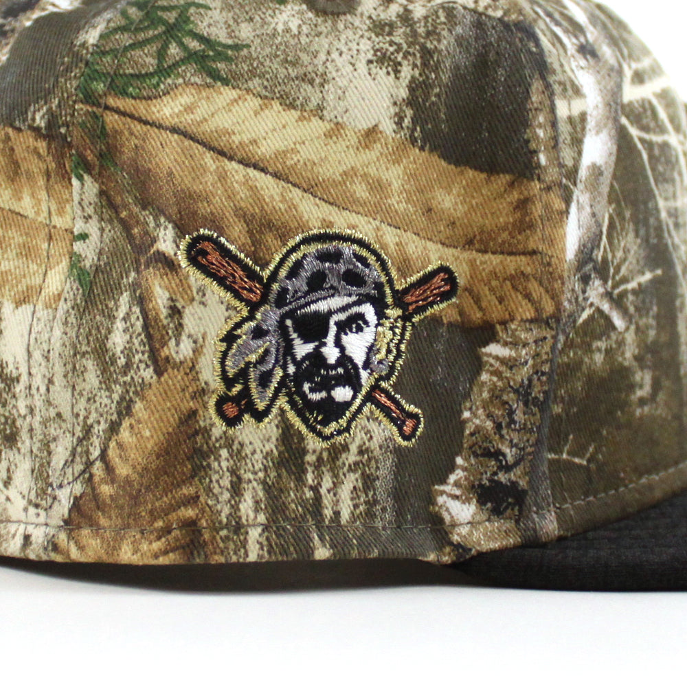 Pittsburgh Pirates Pirates Patch 59Fifty New Era Fitted Hats in RealTree, Black and Woodland Under Brim.