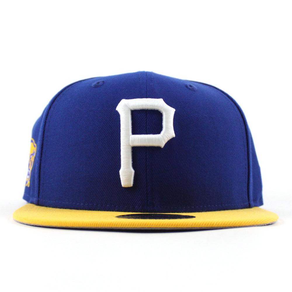 Pittsburgh Pirates x University of Pittsburgh 1996 All Star Game 59Fifty New Era Fitted Hats in Royal Blue, Gold and Gray Under Brim.