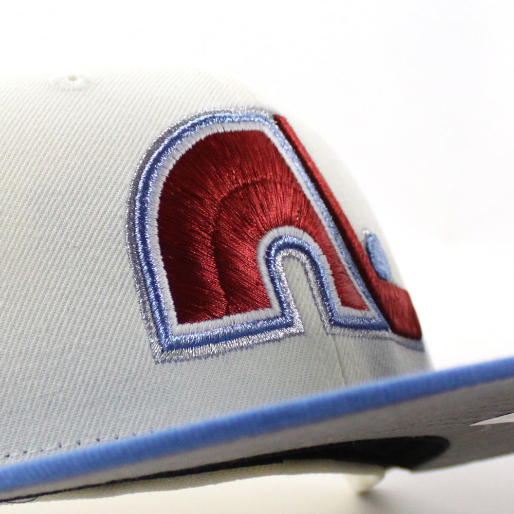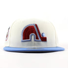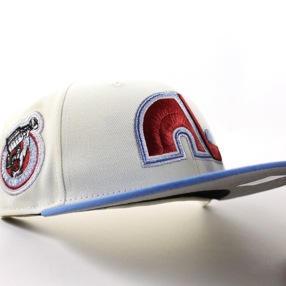 Quebec Nordiques Stanley Cup 1893-1993 New Era 59Fifty Fitted Hat in Chrome White, Light Blue with Gray Under brim.