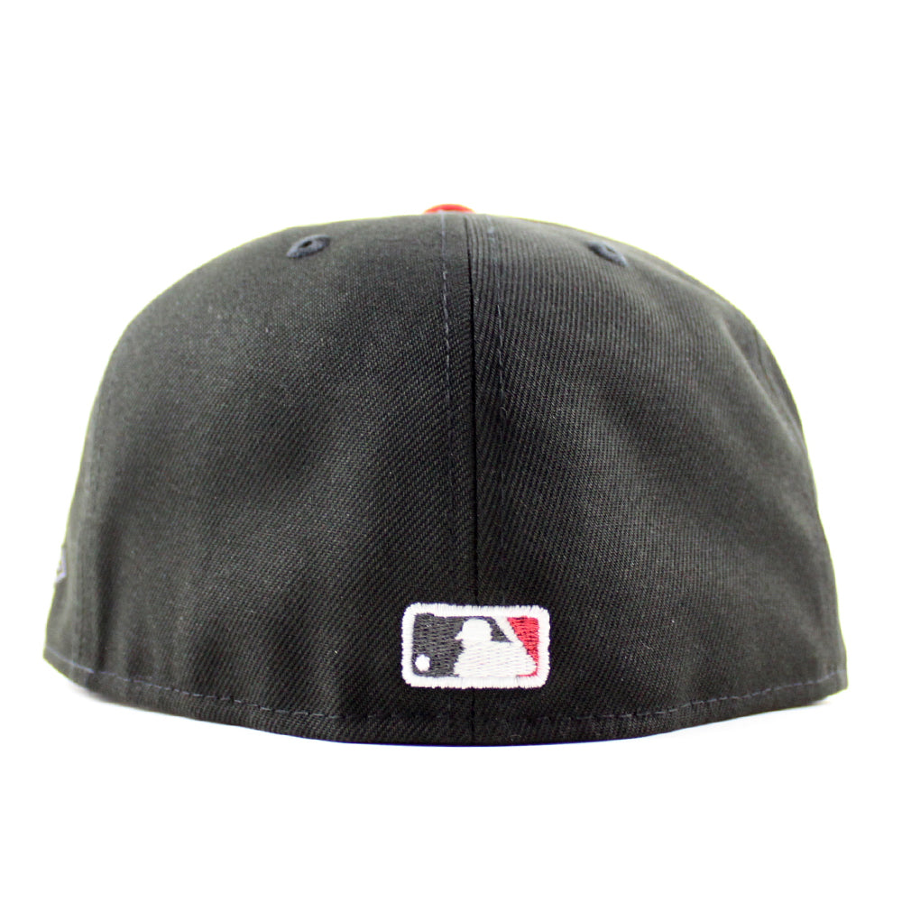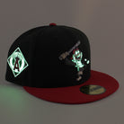 Rally Monkey Los Angeles Angels Baseball Patch New Era 59Fifty Fitted Hat (Black Scarlet Red Green Under Brim)