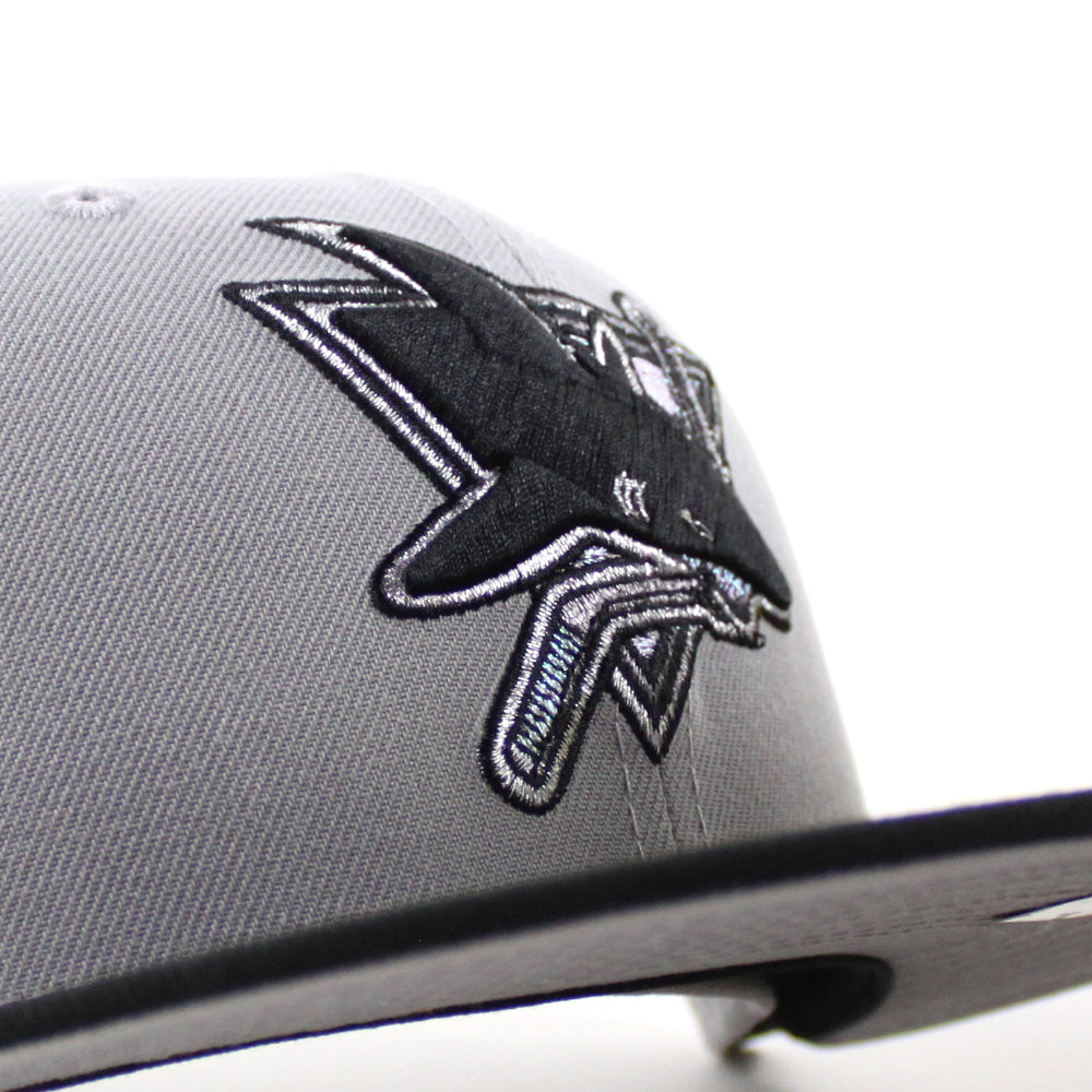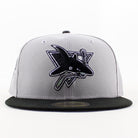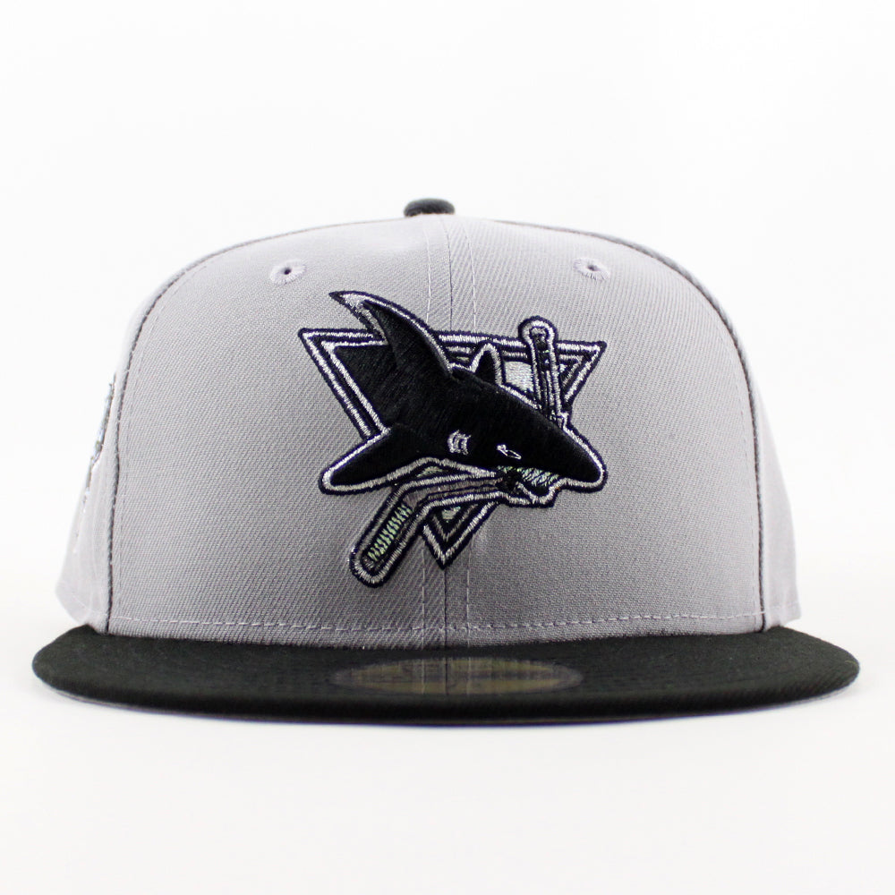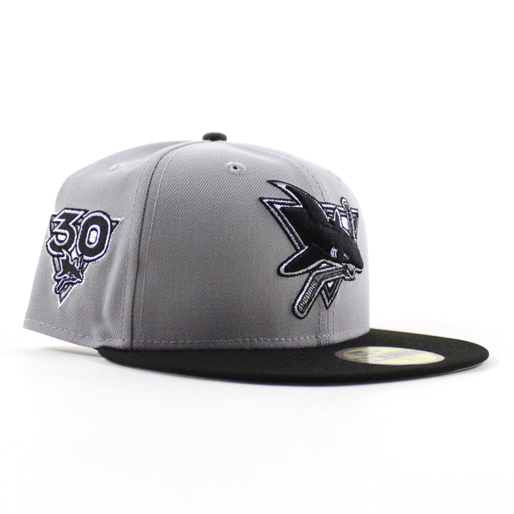 Retro San Jose Sharks 30 Years New Era 59Fifty Fitted Hat in Gray, Black with Gray Under Brim.