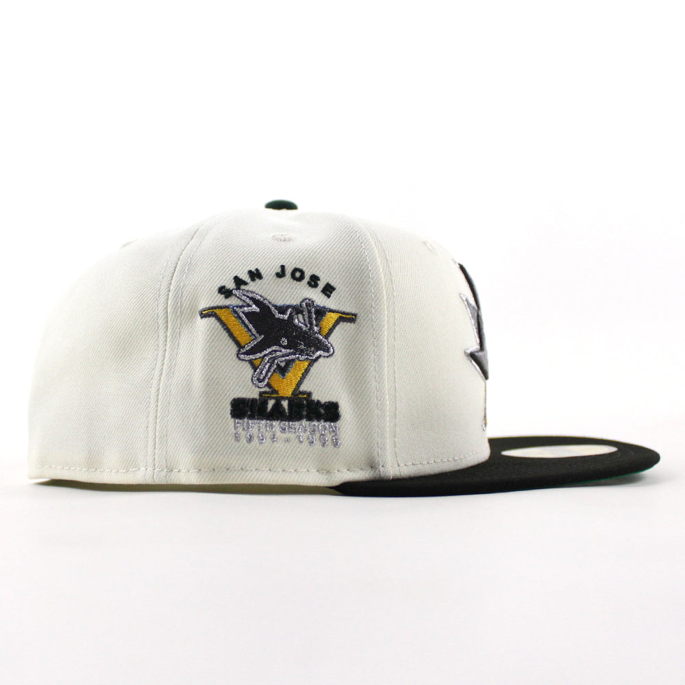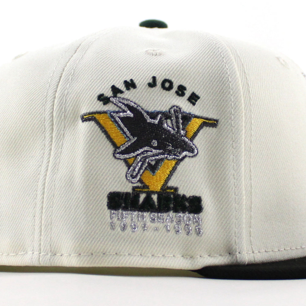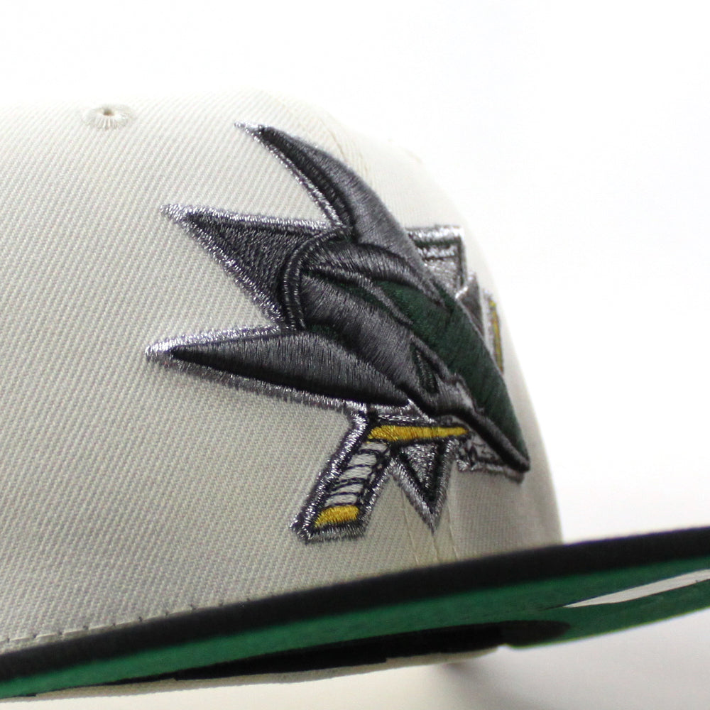 Retro San Jose Sharks 5th Season New Era 59Fifty Fitted Hat (Chrome White Black Green Under Brim)