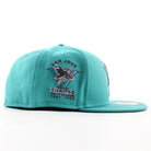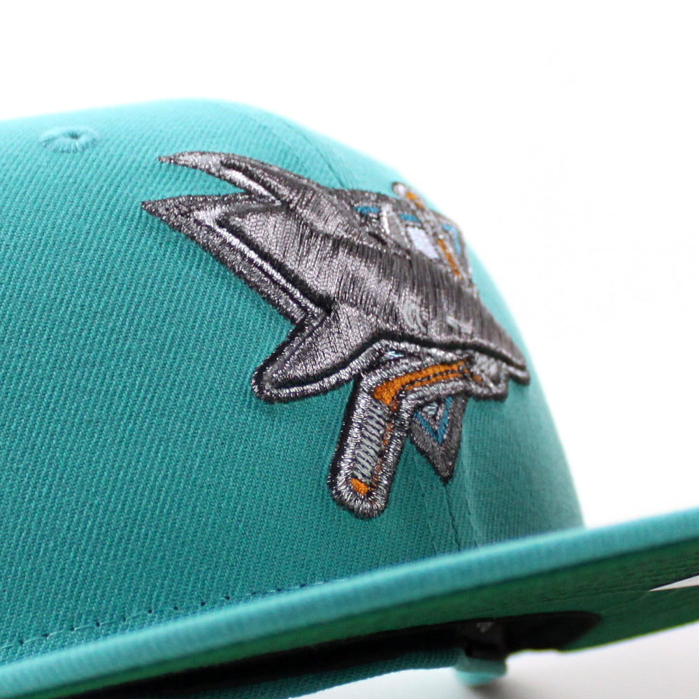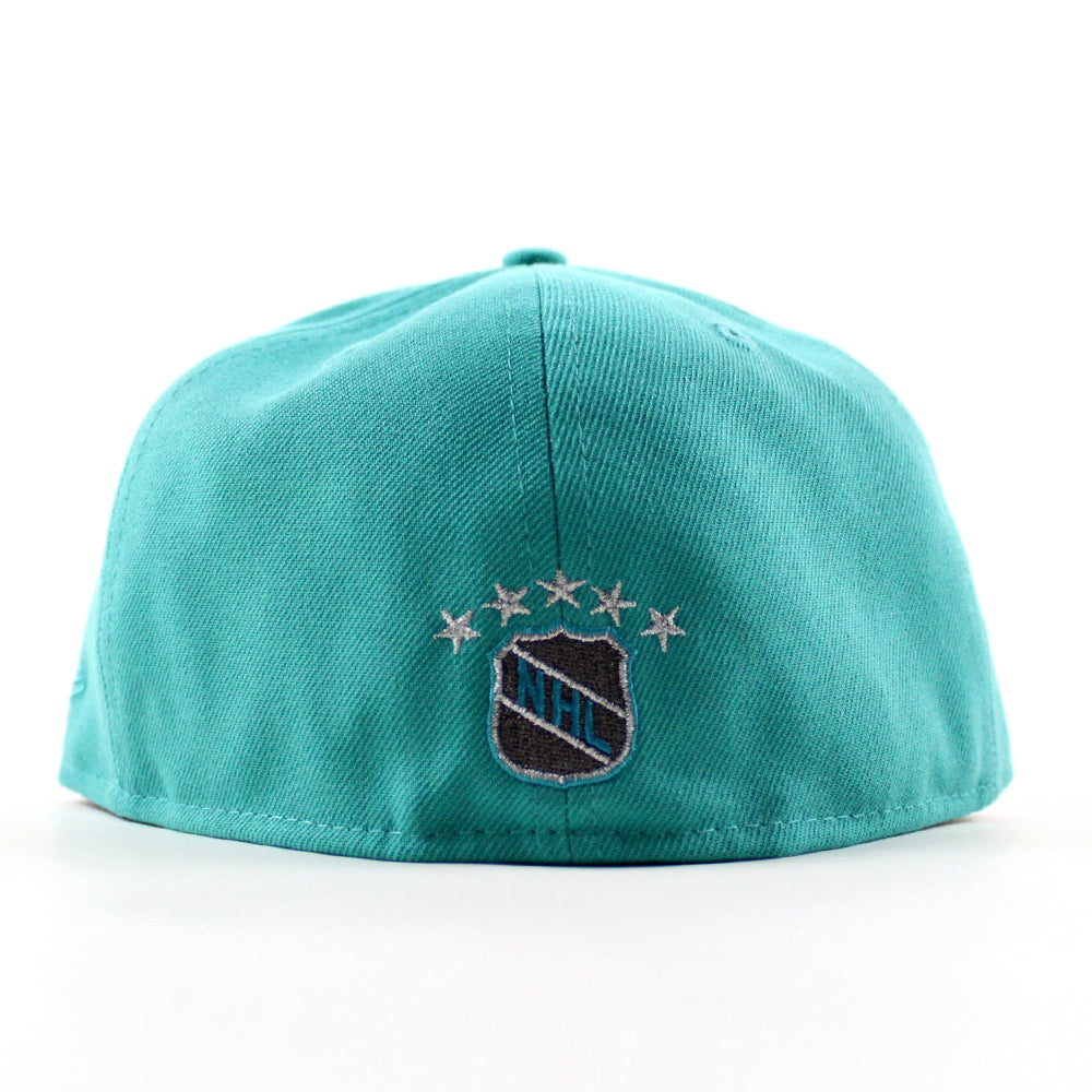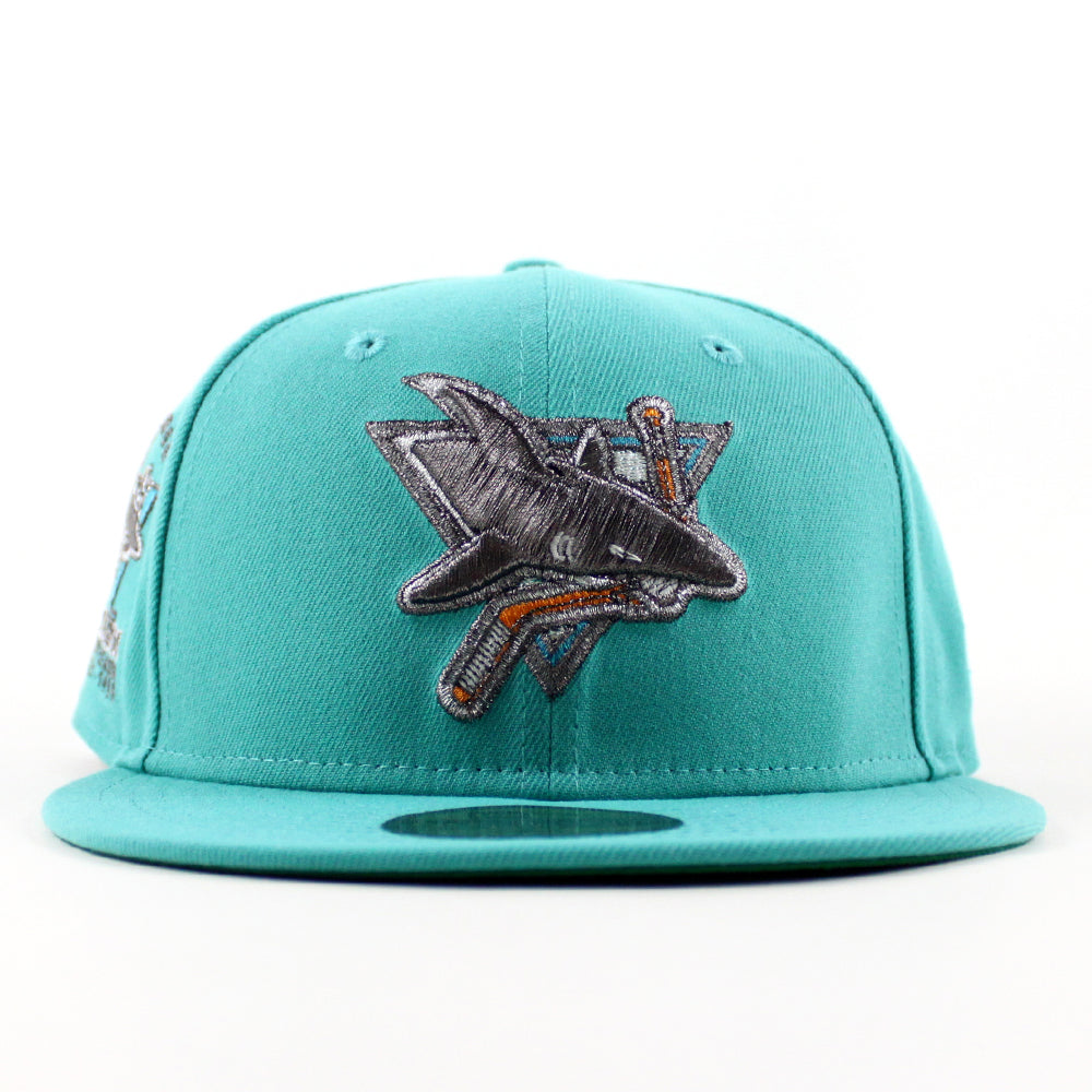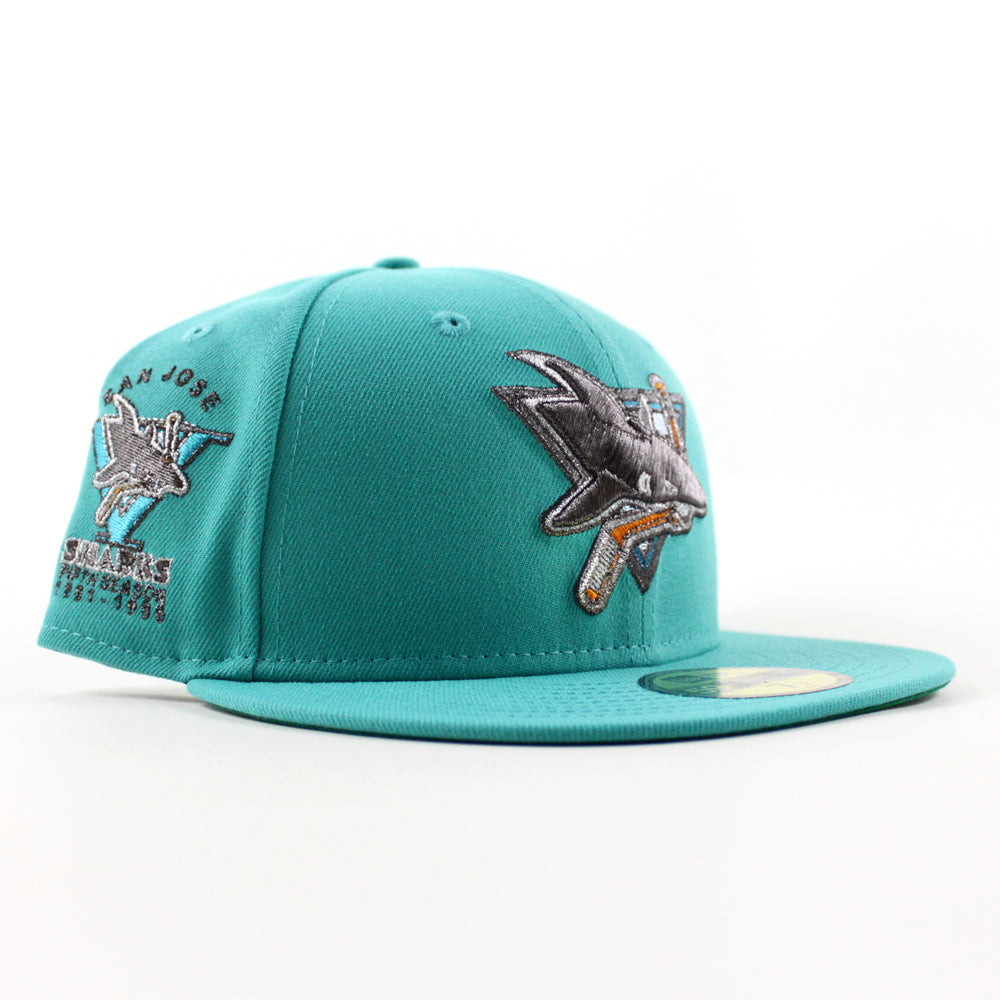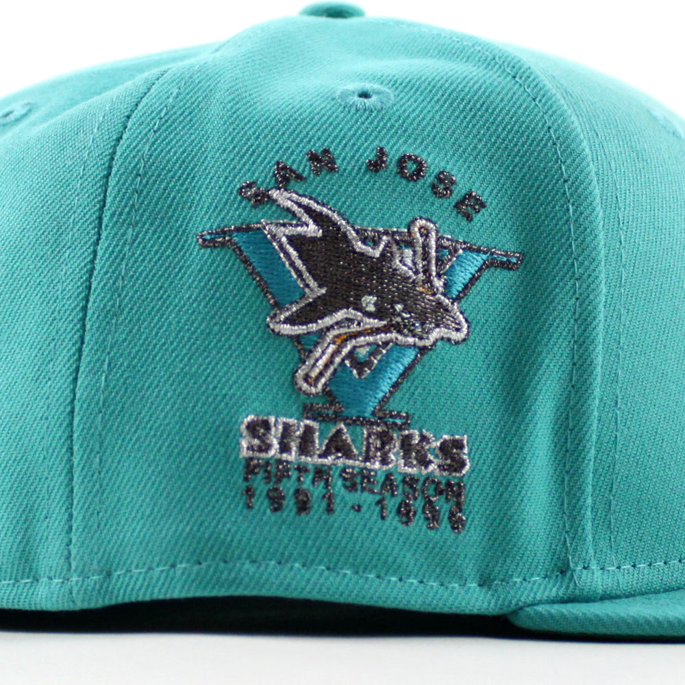 Retro San Jose Sharks 5th Season Patch Era 59Fifty Fitted Hat in Teal with Gray Under Brim.