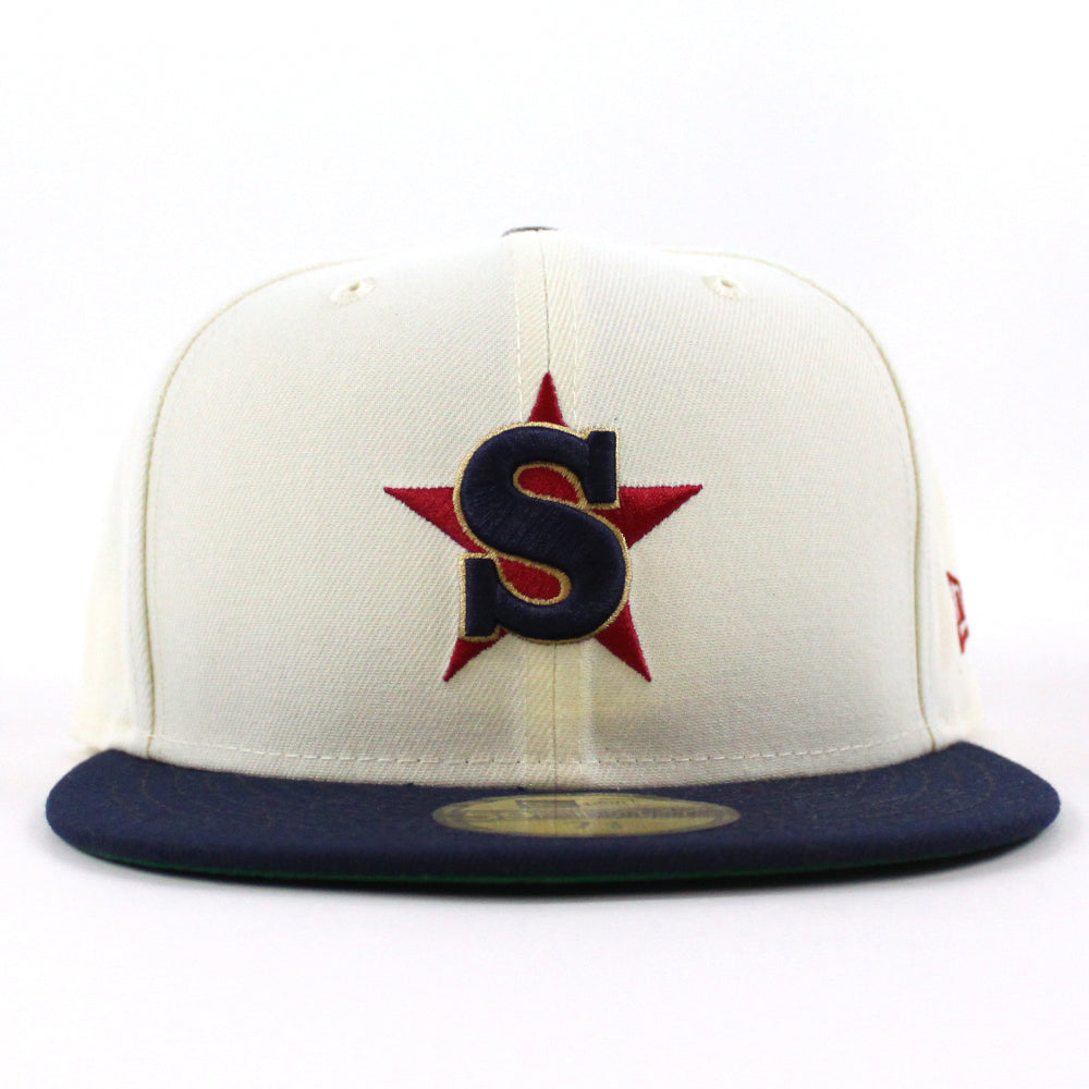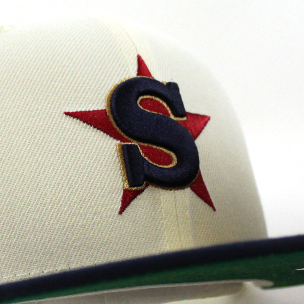 SAN BERNARDINO SPIRIT HOMETOWN COLLECTION New Era 59Fifty Fitted Hat in Chrome White, Aqua, and Green Under Brim.
