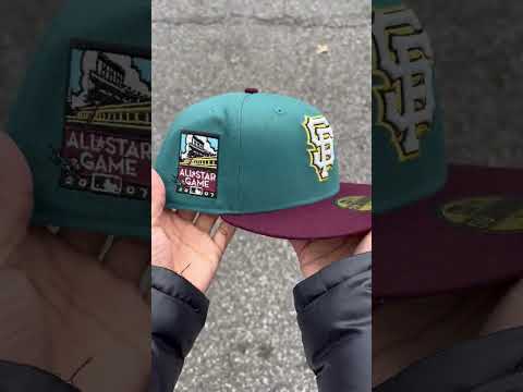 San Francisco Giants 2007 All Star Game New Era 59Fifty Fitted Cap in Pine Green, Maroon and Gray Under Brim.