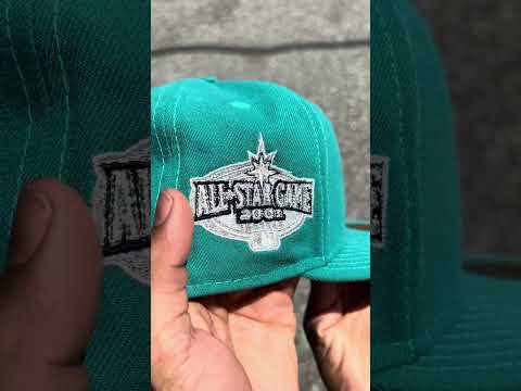 Seattle Mariners 2001 All Star Game New Era 59Fifty Fitted Hat in Teal and Gray Under Brim.