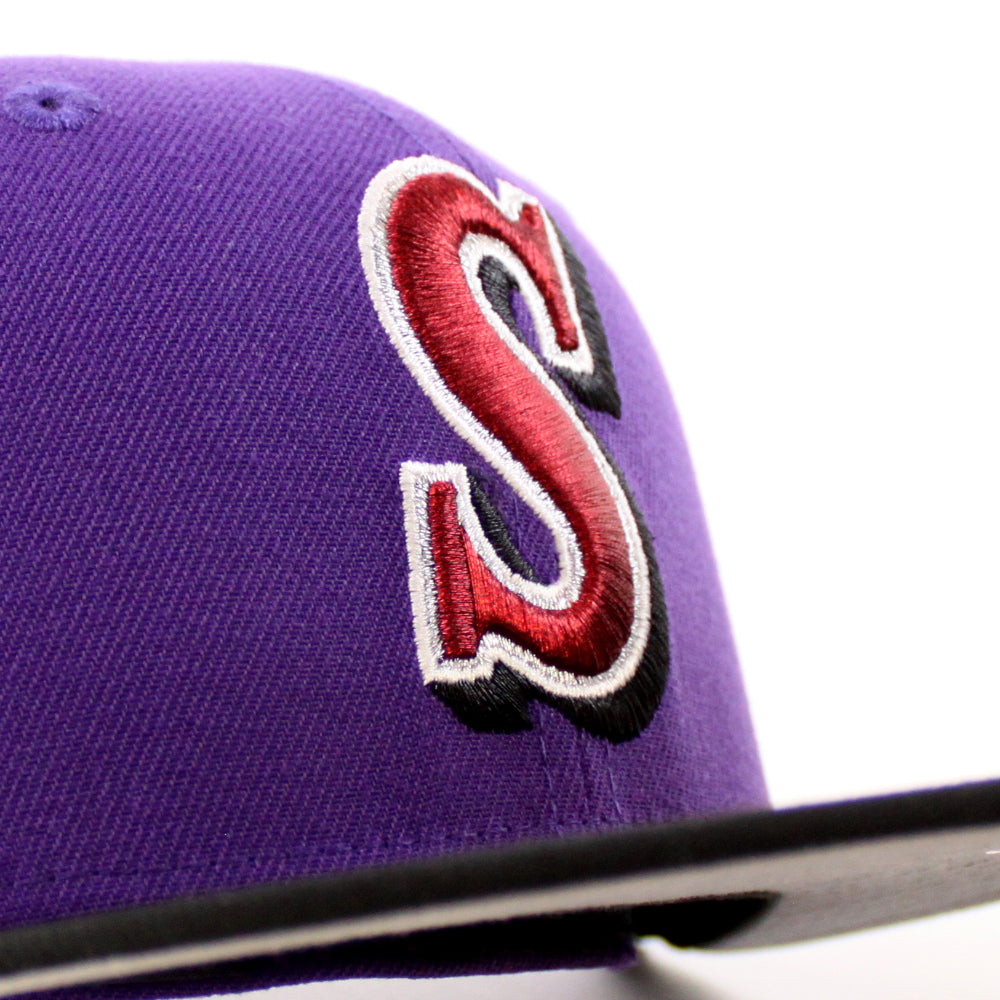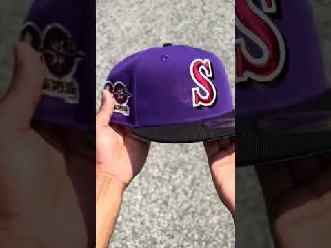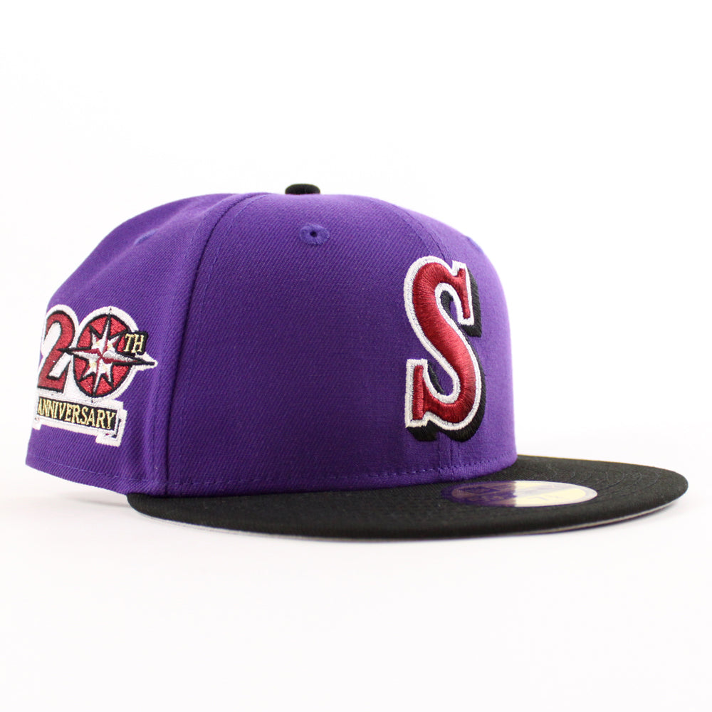 Seattle Mariners 20th Anniversary New Era 59Fifty Fitted Hat in Purple, Black and Gray Under Brim.