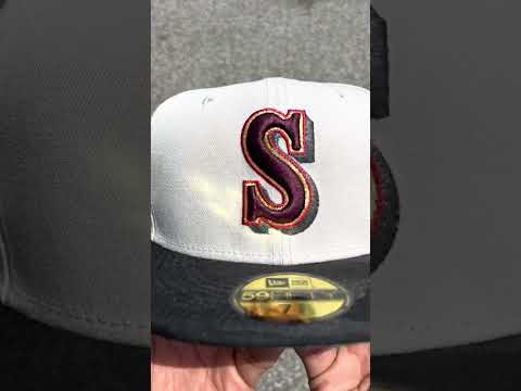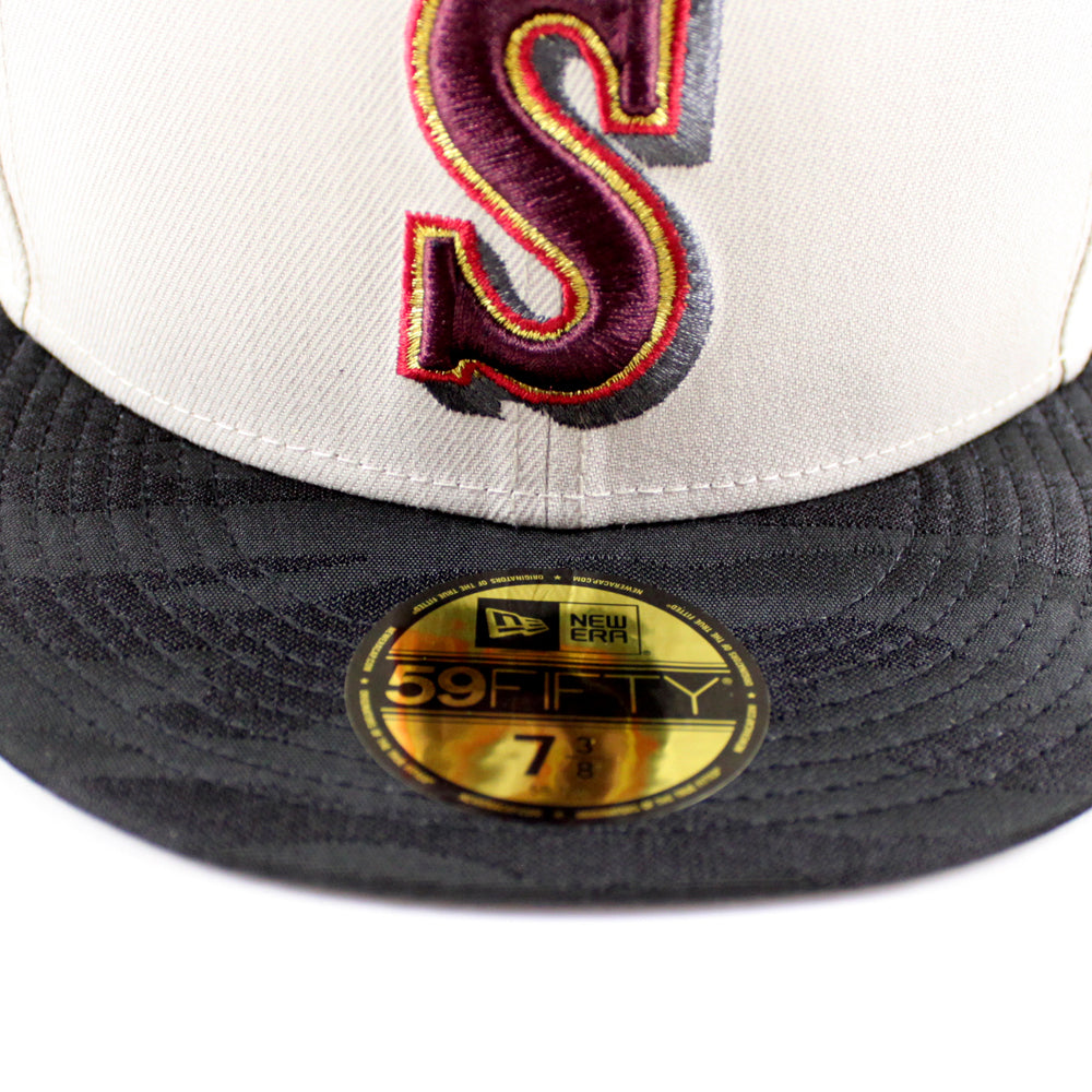 Seattle Mariners 20th Anniversary New Era 59Fifty Fitted Hat in Stone, Black Camo and Gray Under Brim.