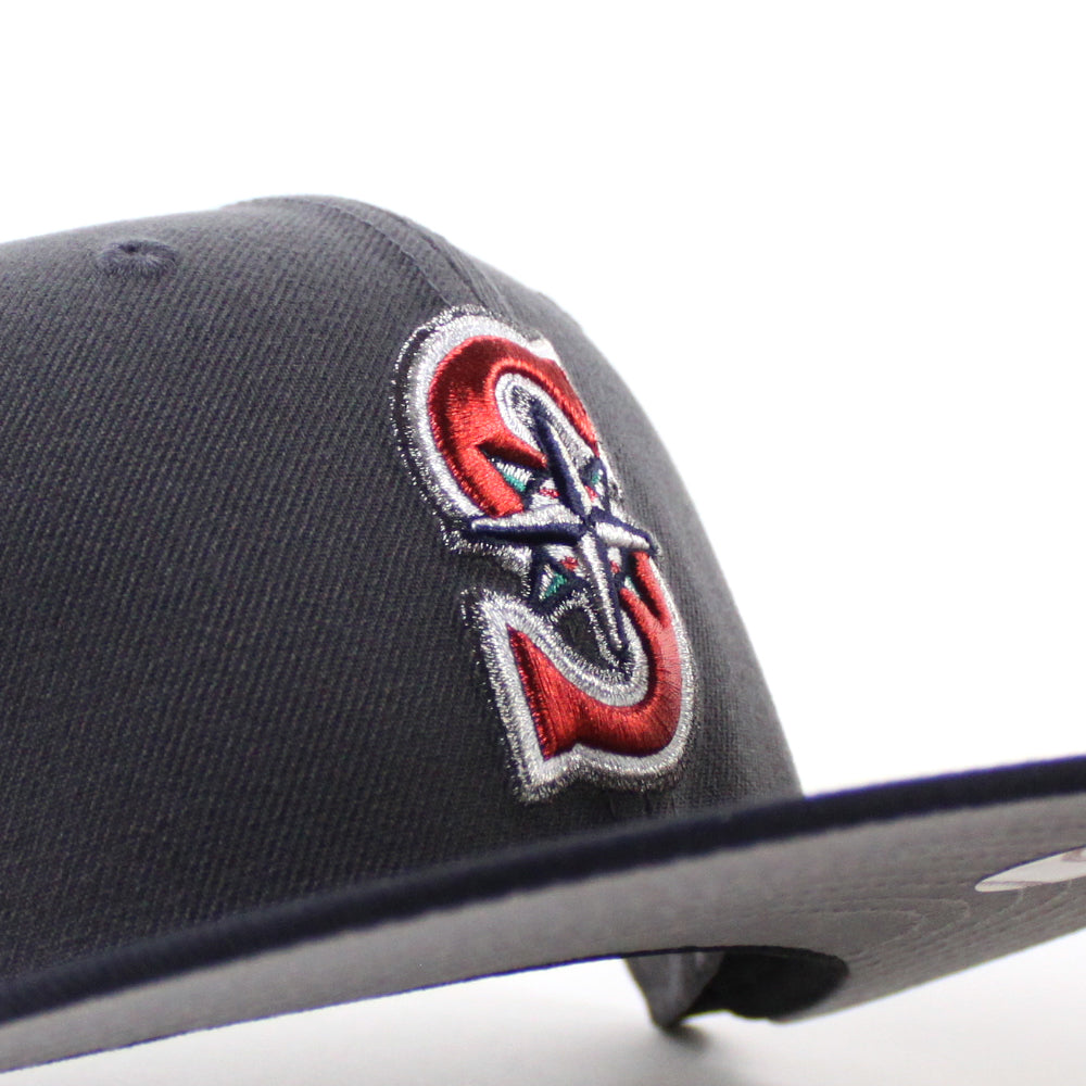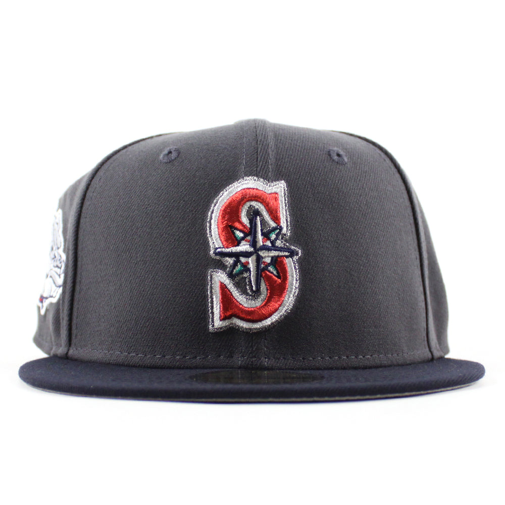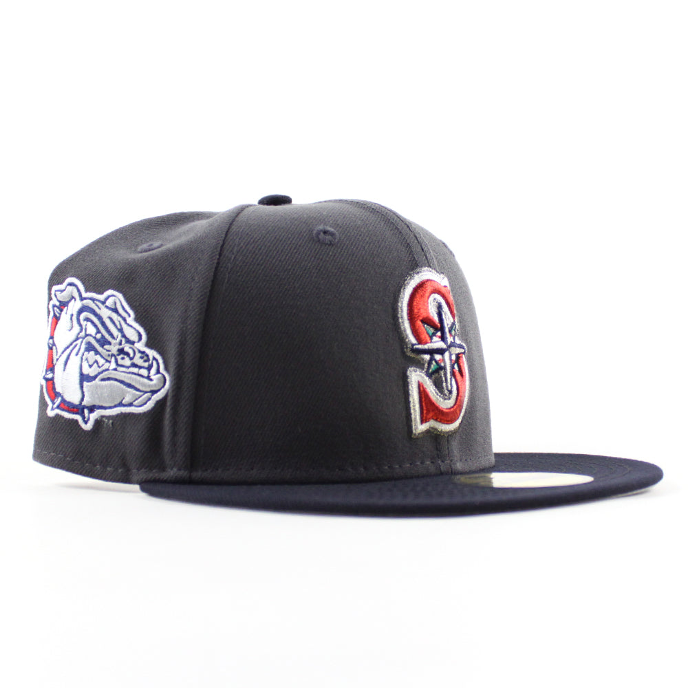 Seattle Mariners x GONZAGA BULLDOGS New Era 59Fifty Fitted Hat in Graphite Gray, Navy and Gray Under Brim.