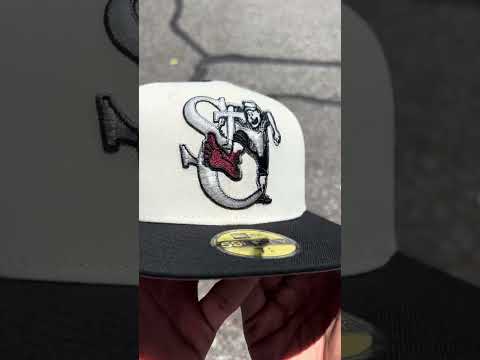 St. Catharines Stompers New Era 59Fifty Fitted Cap in Chrome White, Black and Gray Under Brim.