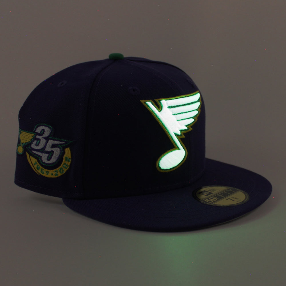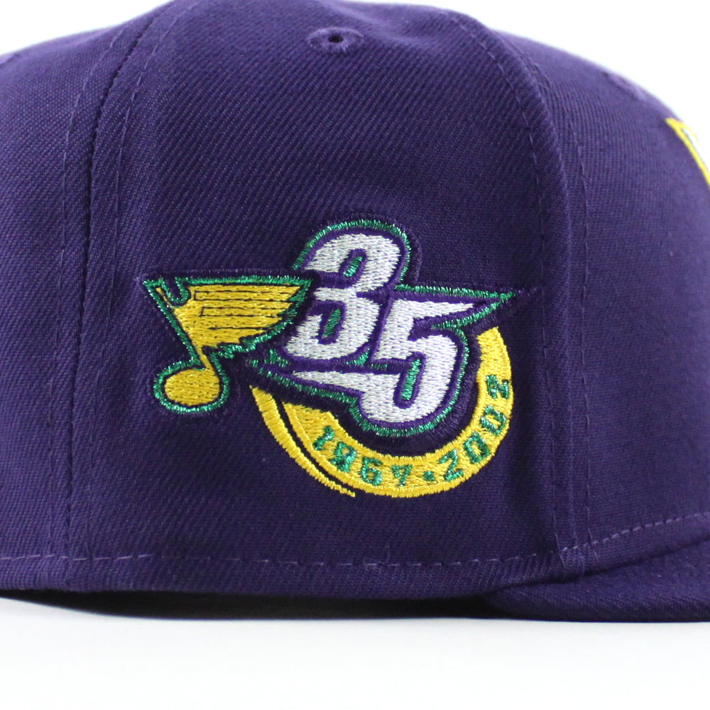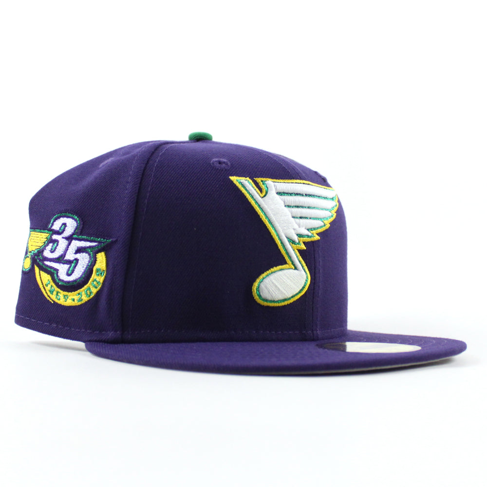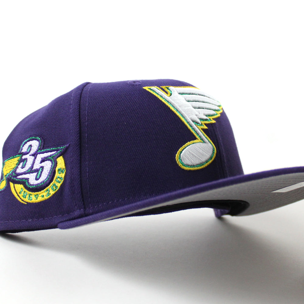 St. Louis Blues 35 Years New Era 59Fifty Fitted Hat in Purple and Gray Under brim.