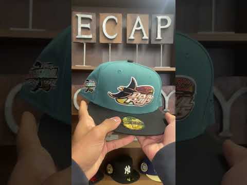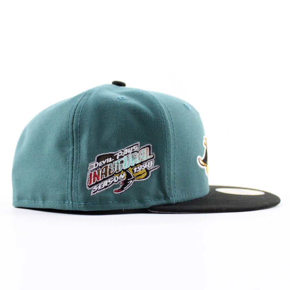 Tampa Bay Devil Rays 1998 Inaugural Season New Era 59Fifty Fitted Cap in Pine Green, Black and Gray Under Brim.