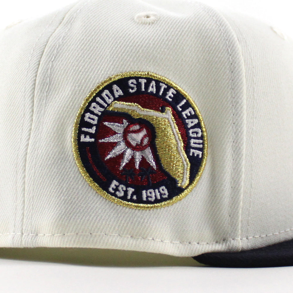 TAMPA YANKEES Florida State League Patch New Era 59Fifty Fitted Hat (Chrome White Navy Green Under Brim)