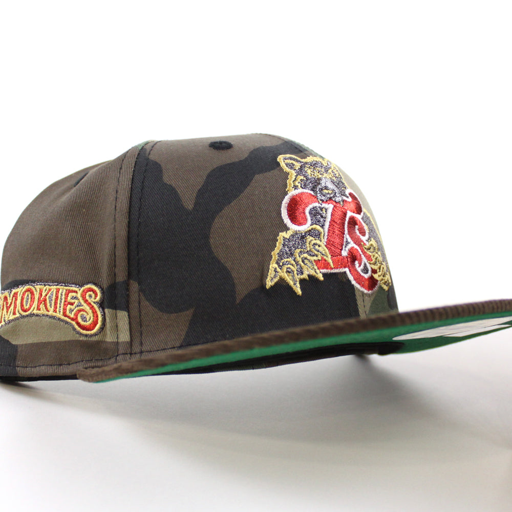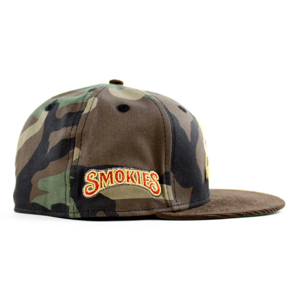 TENSMO TENNESSEE SMOKIES BEAR New Era 59Fifty Fitted Hat (WoodLand Camo Brown Green Under Brim)